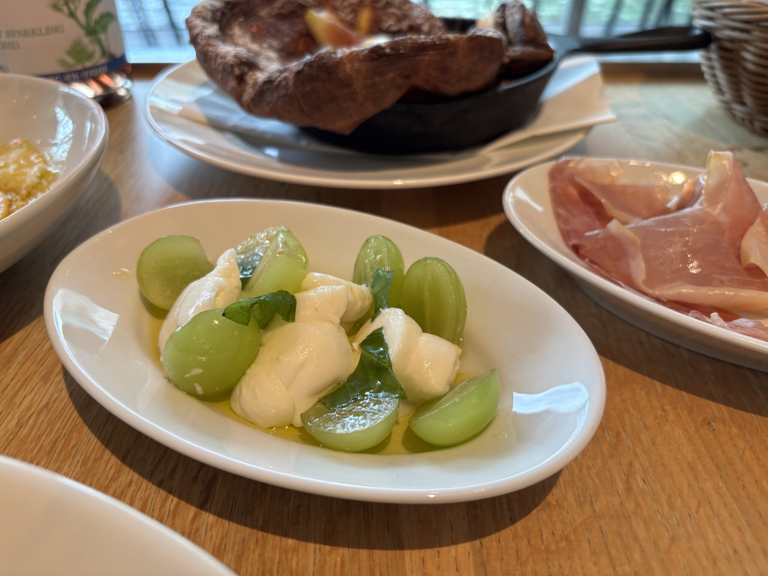 もちもち、濃厚でクリーミーなモッツアレラとシャインマスカットとの相性がよく食欲がそそります(*´ω`*)
