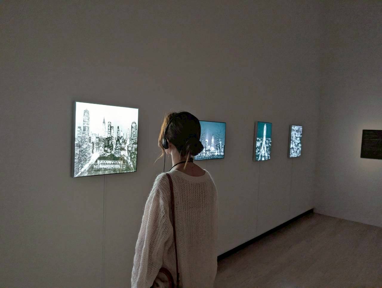壁一面に映し出されるアメリカの洗練された街並みとジュエリーを一緒に鑑賞してください。