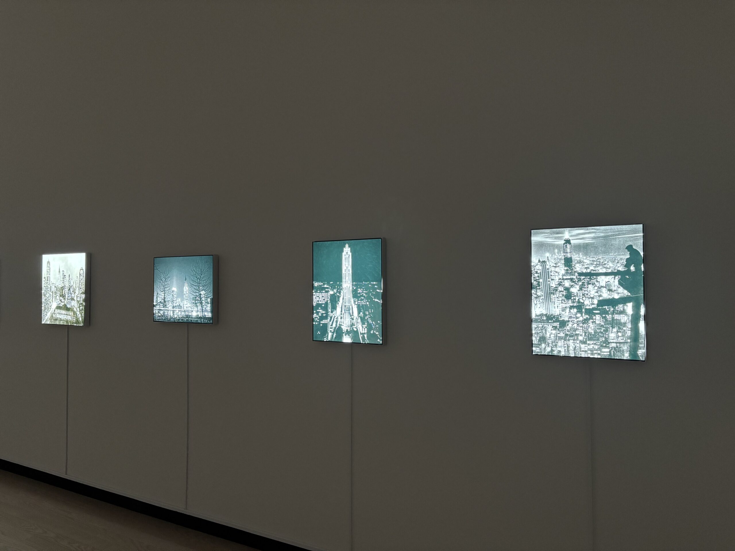 壁一面に映し出されるアメリカの洗練された街並みとジュエリーを一緒に鑑賞してください。