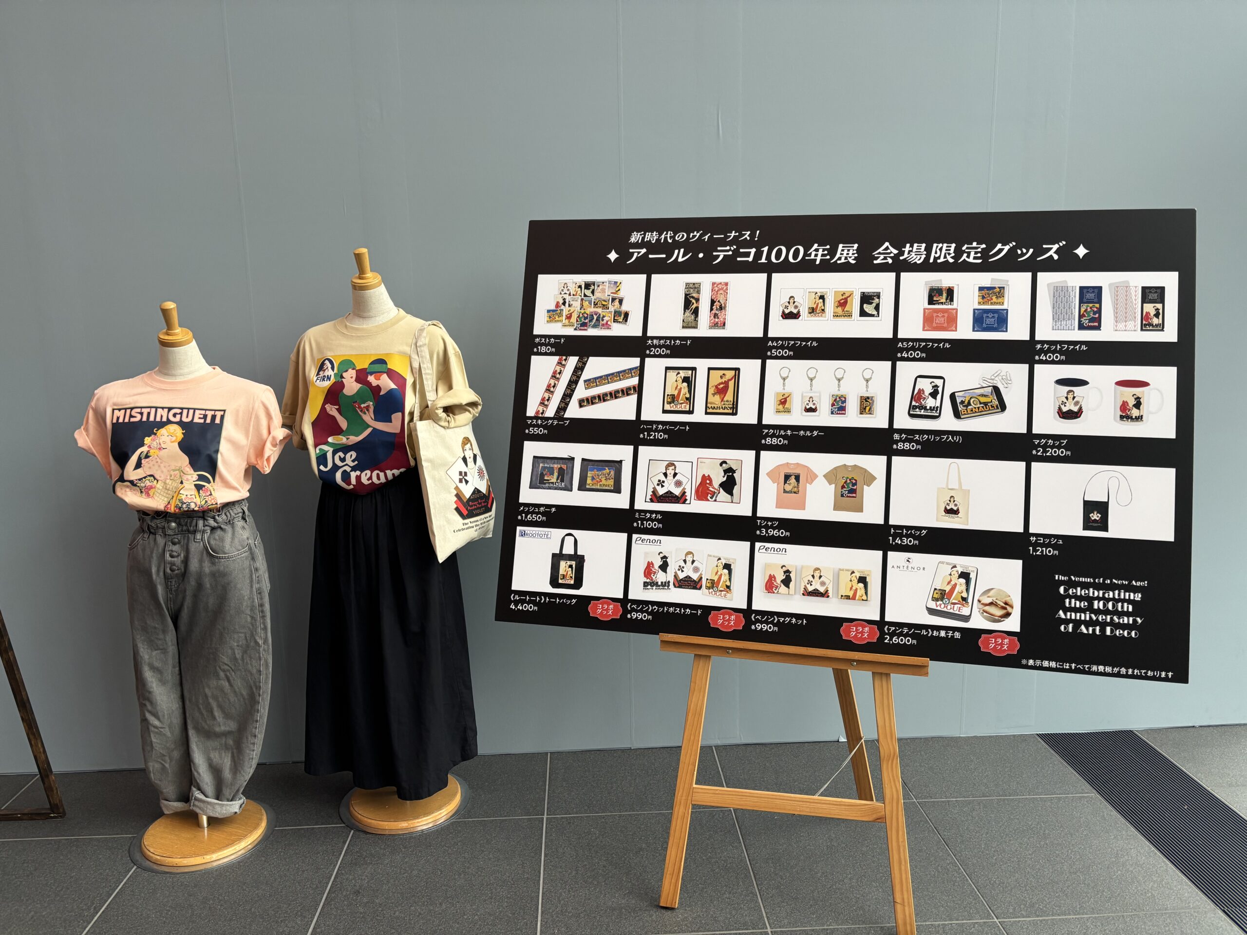 「《PENON》タッチミー!ウッドポストカード/マグネット」や、「マグカップ」、「Tシャツ」等、自宅でもアール・デコを楽しめるグッズが勢揃い!