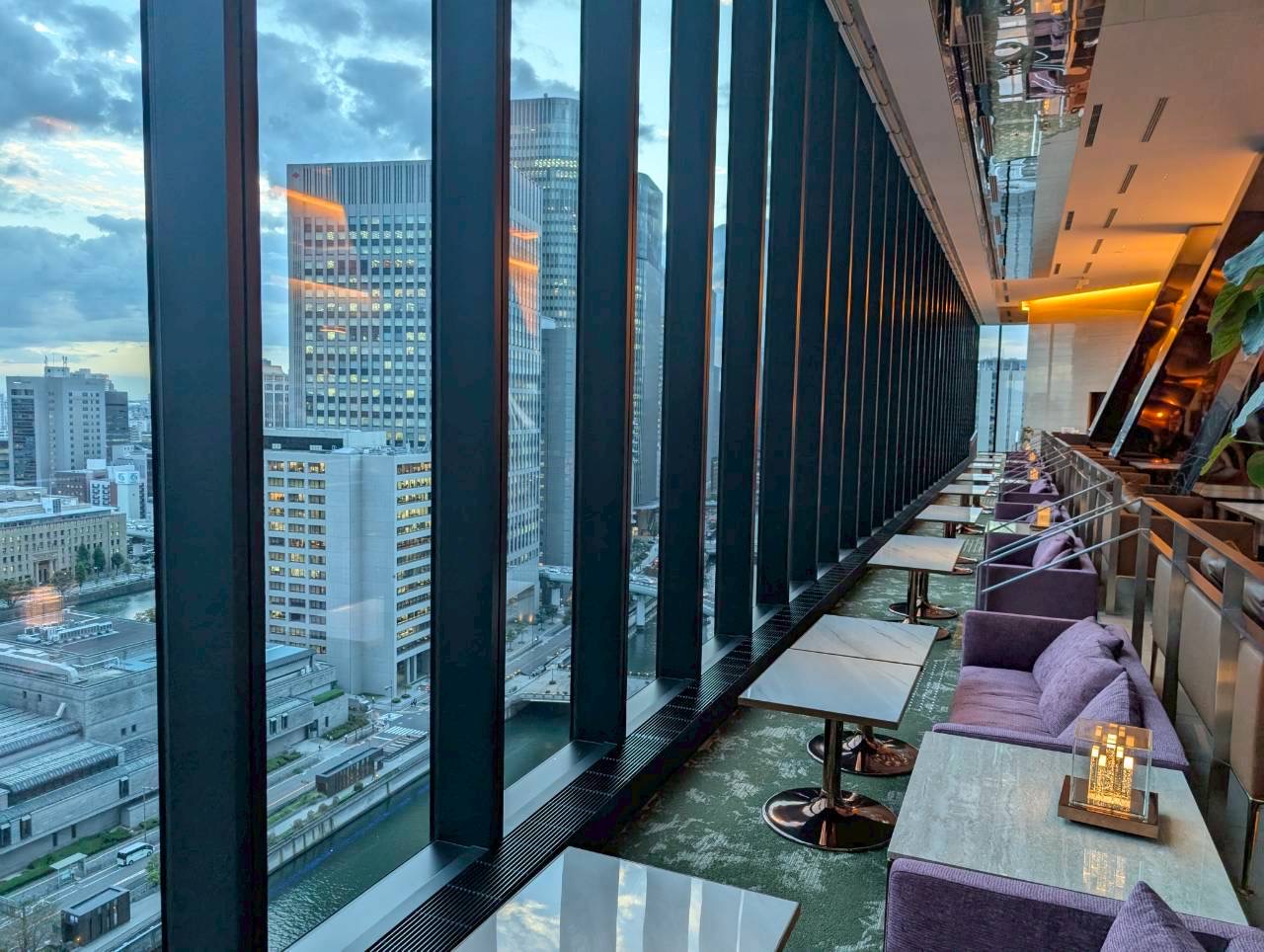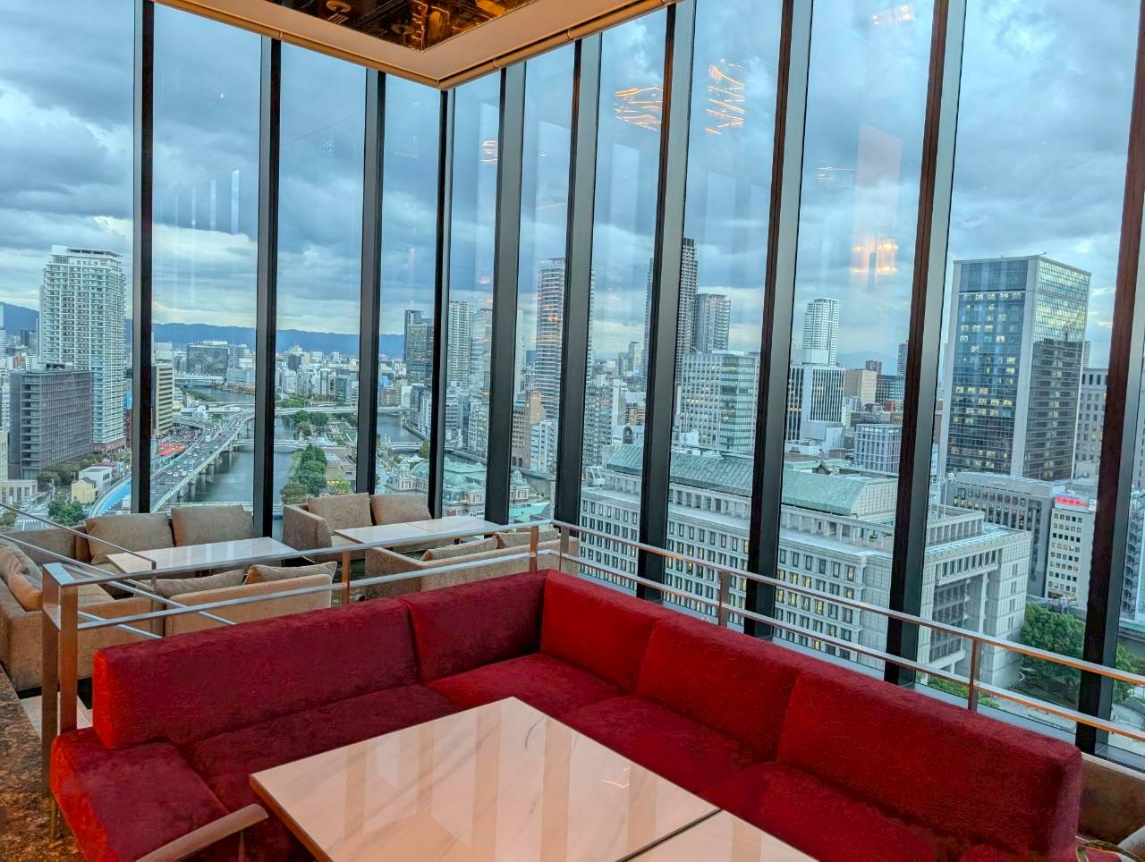 大きな二面の窓から見える中之島の風景は昼も夜も素敵です♡