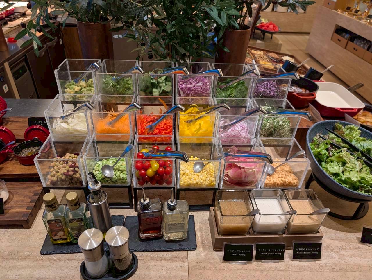 色とりどりの野菜やドレッシングの種類も多いので、アレンジが楽しめます。