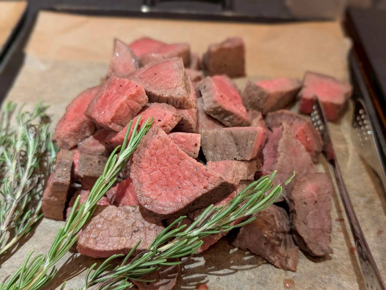 さっぱりとした赤身に脂の旨みが溶け込む、バランスの取れたサロマ牛を使用。