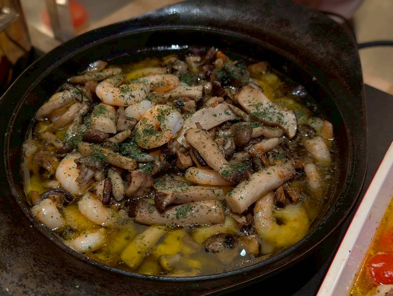きのこ類たっぷりのアヒージョ、お洒落な味です。