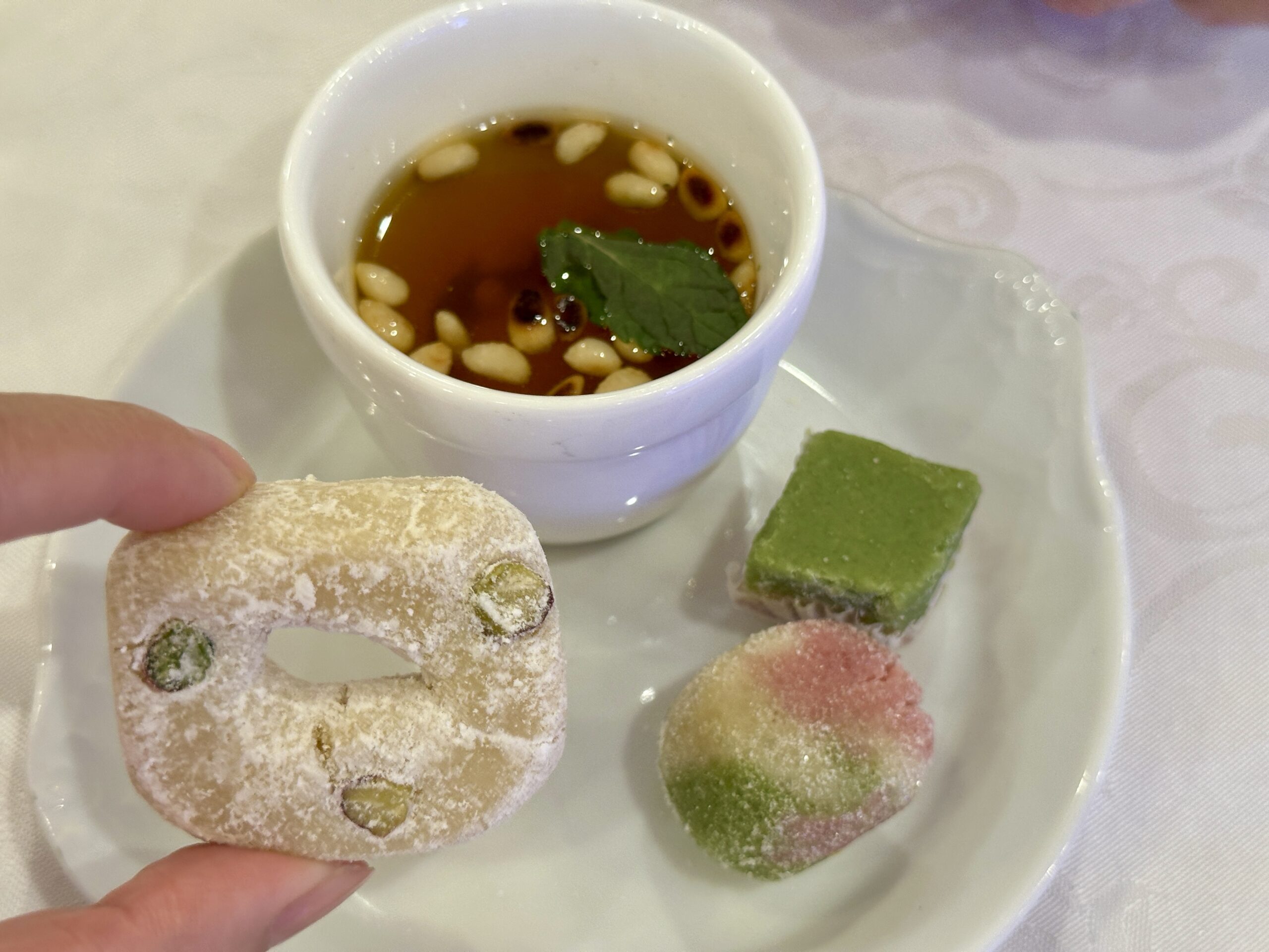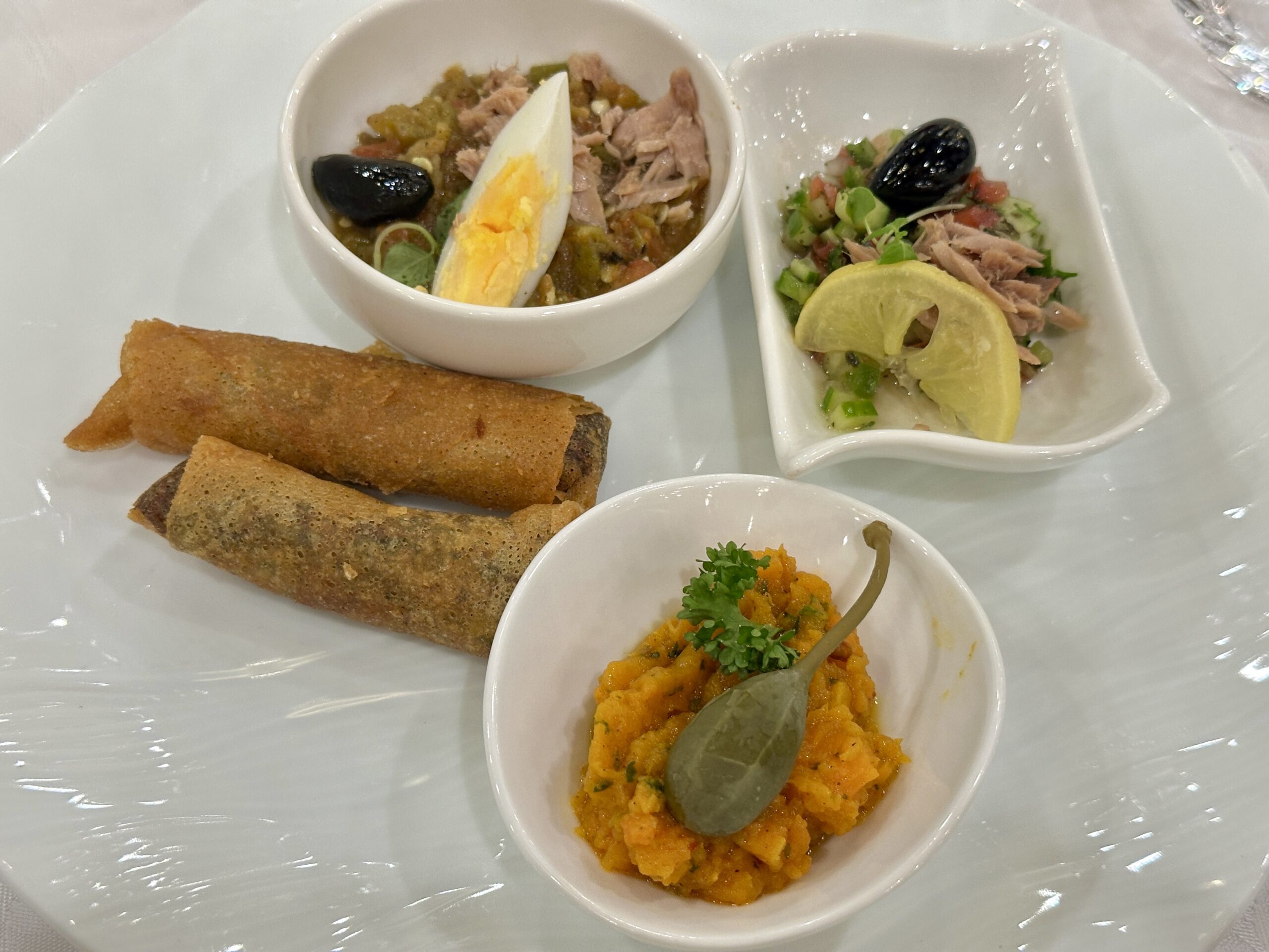 席に着くと、各テーブルにはチュニジアの風景写真や伝統モチーフが散りばめられていて、細部にまで文化へのリスペクトが感じられました(。・ω・。)ノ♡
