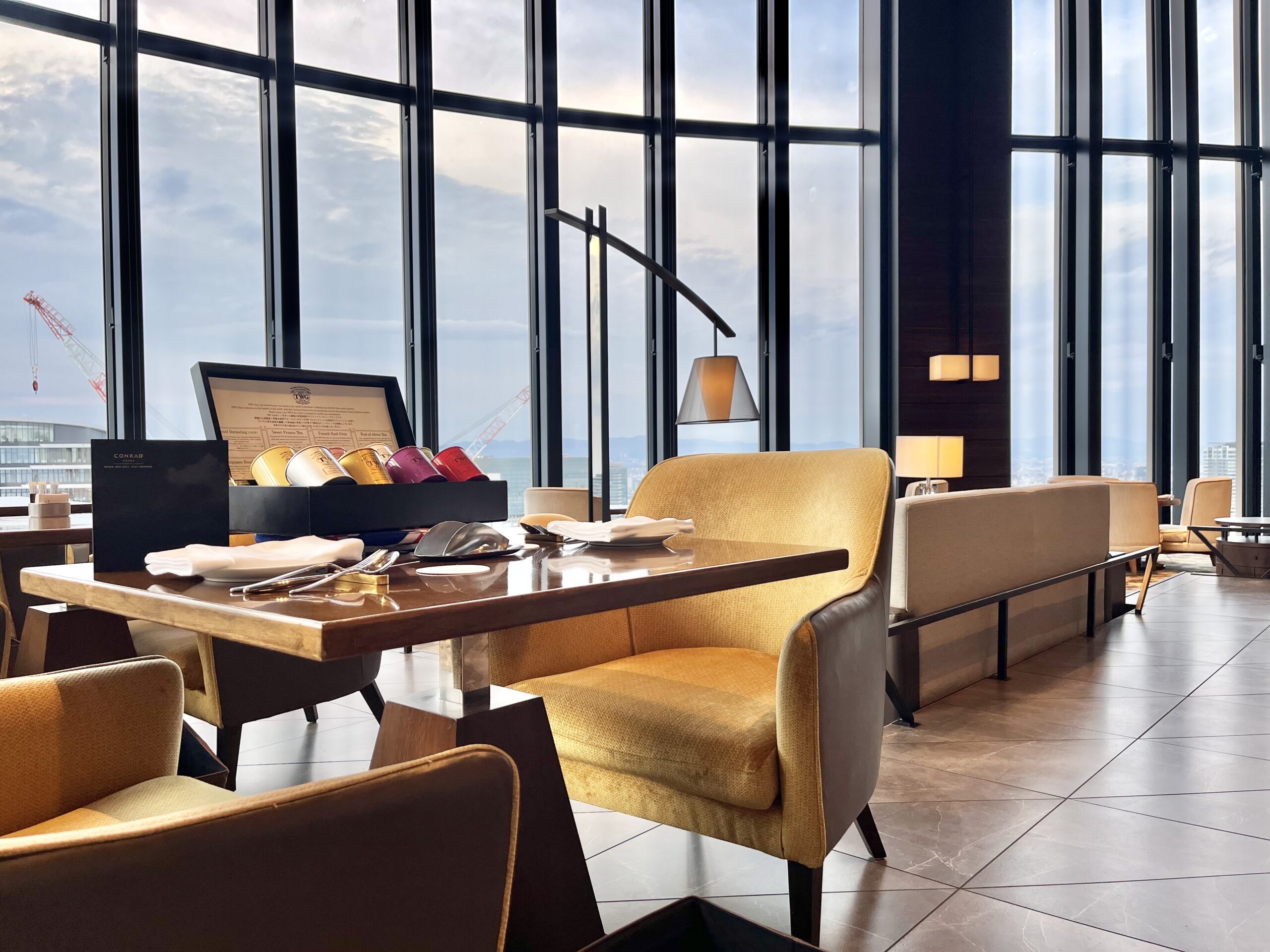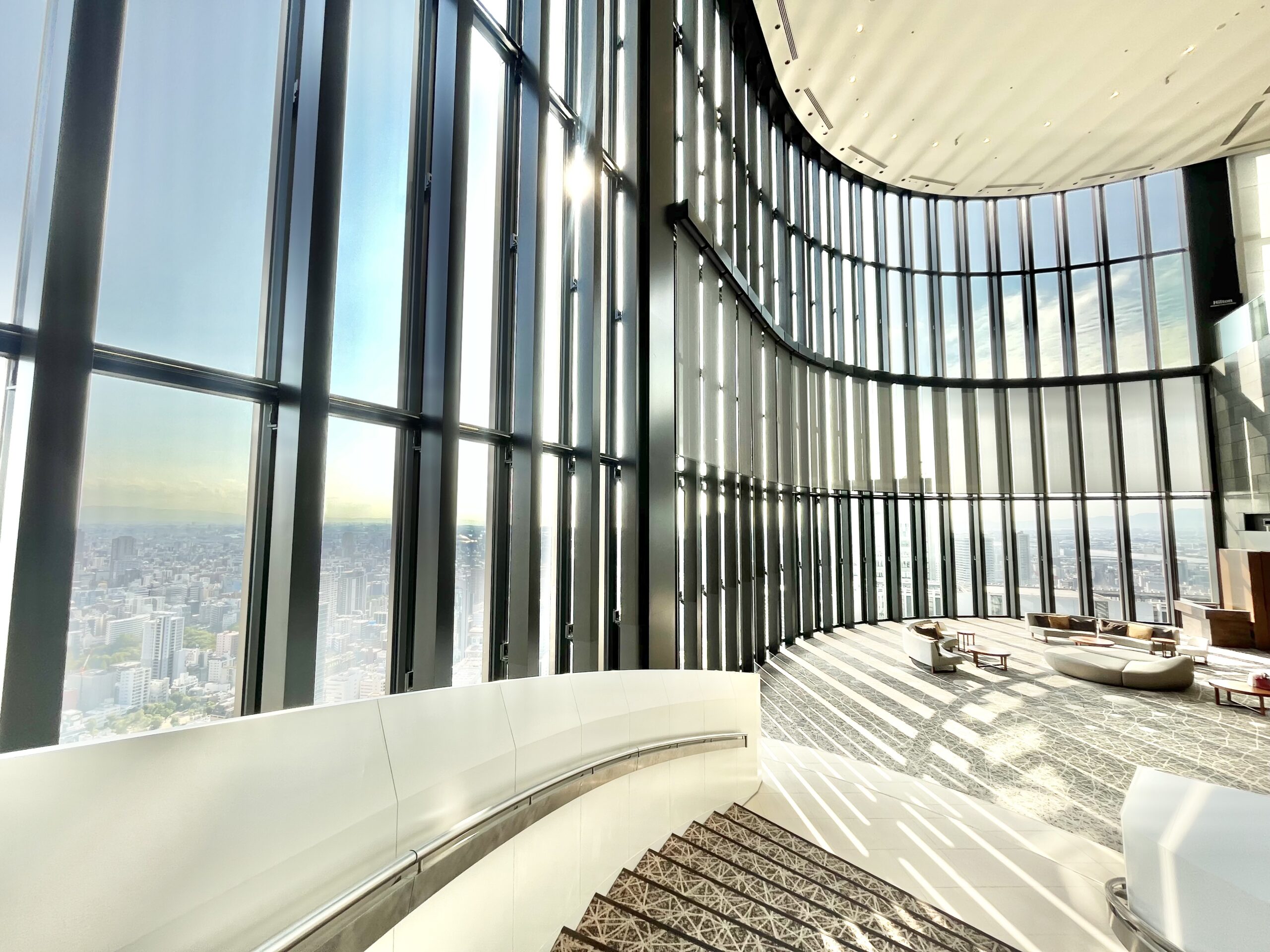 天井まで届くガラス窓からは、大阪の街並みが望め、まるで空に浮かんでいるようです。