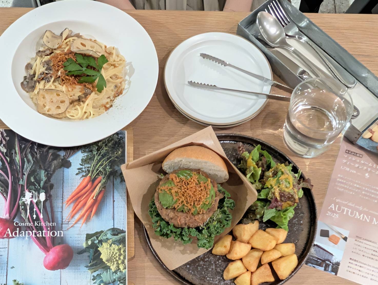 「Cosme Kitchen Adaptation」では、秋メニューの第二弾として世界で初めて誕生した、まるでチーズのように削って味わう味噌「みそぶし」を使用した、ヴィーガンパスタとバーガーが期間限定で新登場しています。
