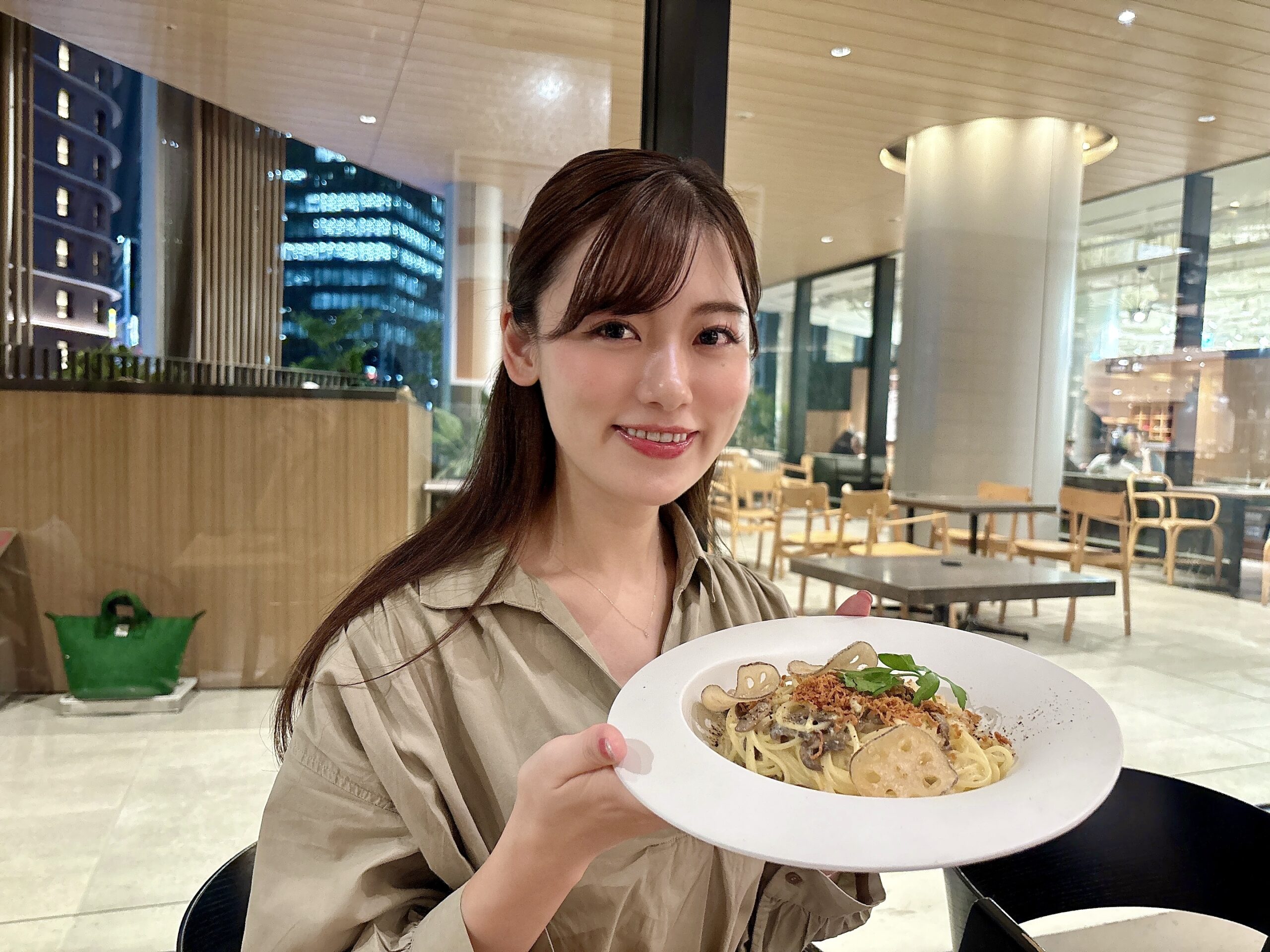 香ばしくソテーしたマッシュルームの旨味と、シャキッとした食感が残るように素揚げした蓮根のチップスを添えた秋の豆乳クリームパスタです。