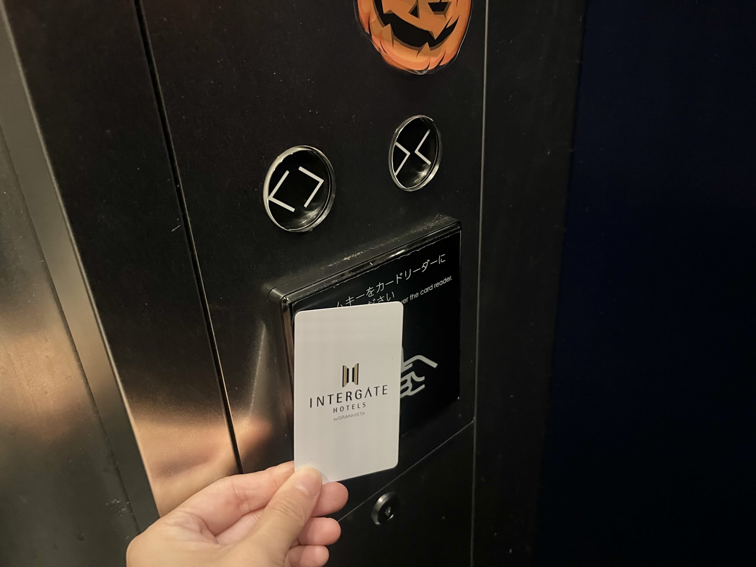 カードキーをかざすことで目的階へアクセス可能となり、宿泊者以外の立ち入りを制限しています。