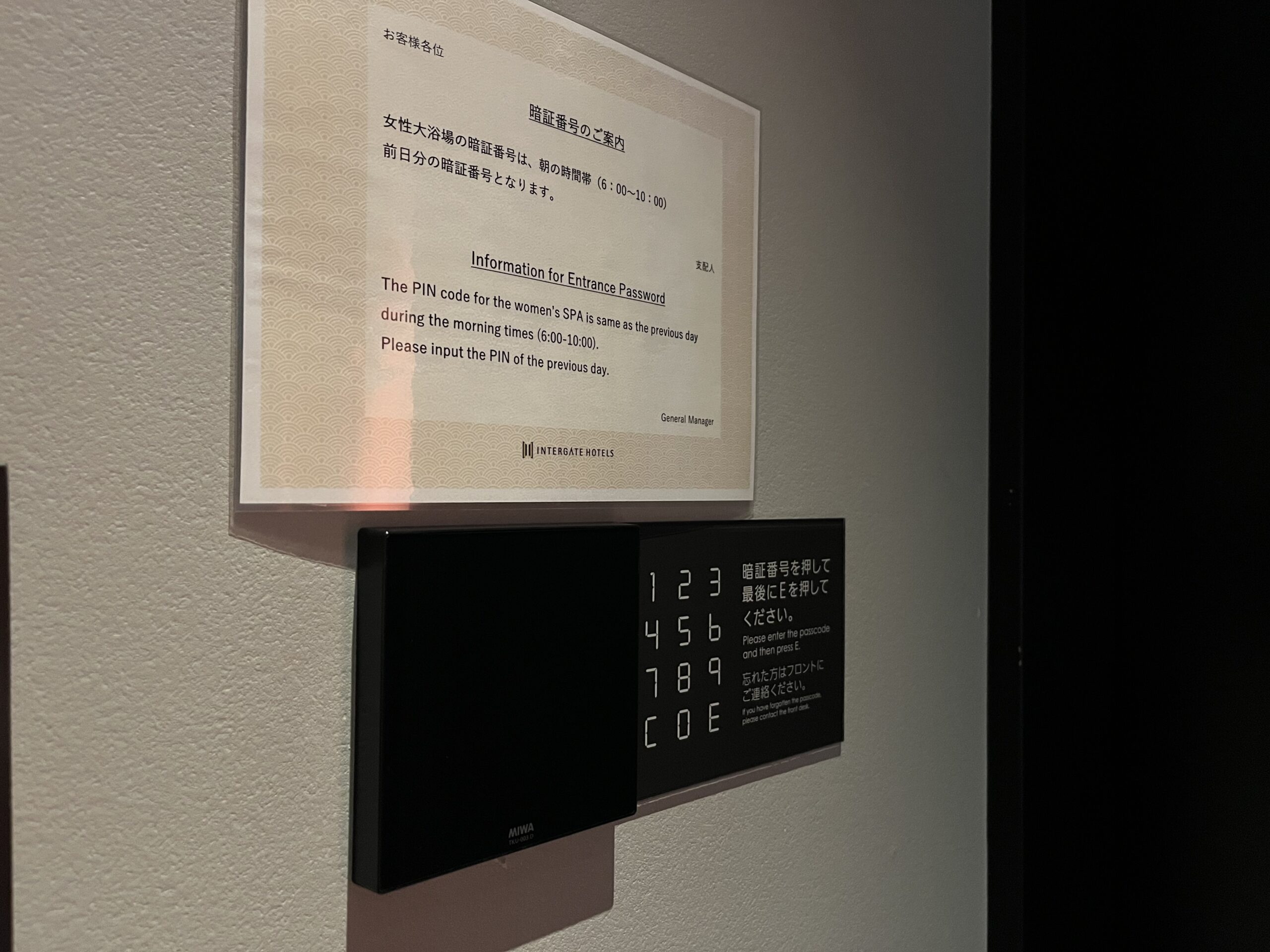 女性浴場には暗証番号によるロックシステムも付いていて、セキュリティ面にも配慮されていました。