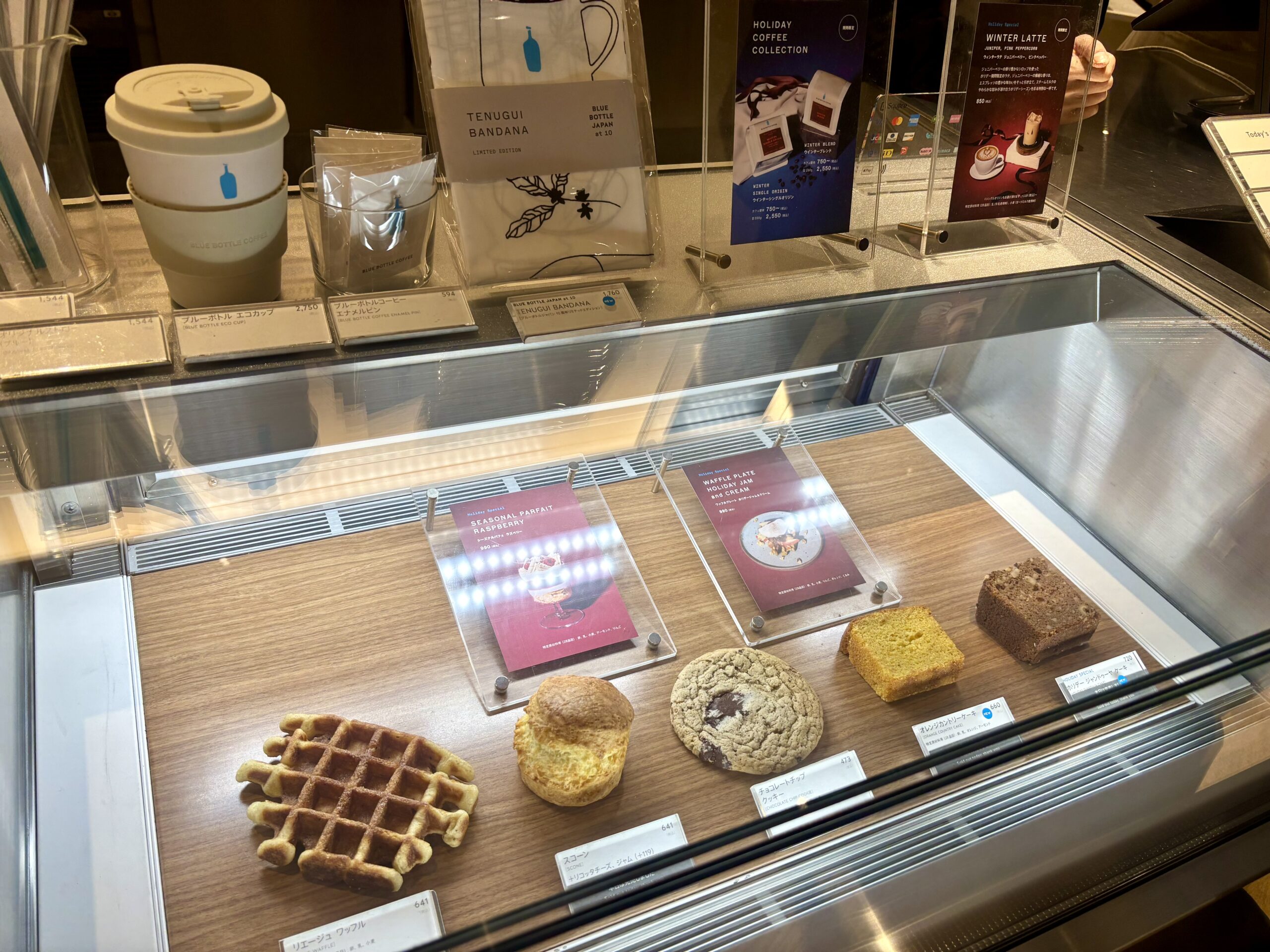 一階レジ前ショーケースにはコーヒーに合うペアリングスイーツもシーズナブルメニューが加わり、充実していました。