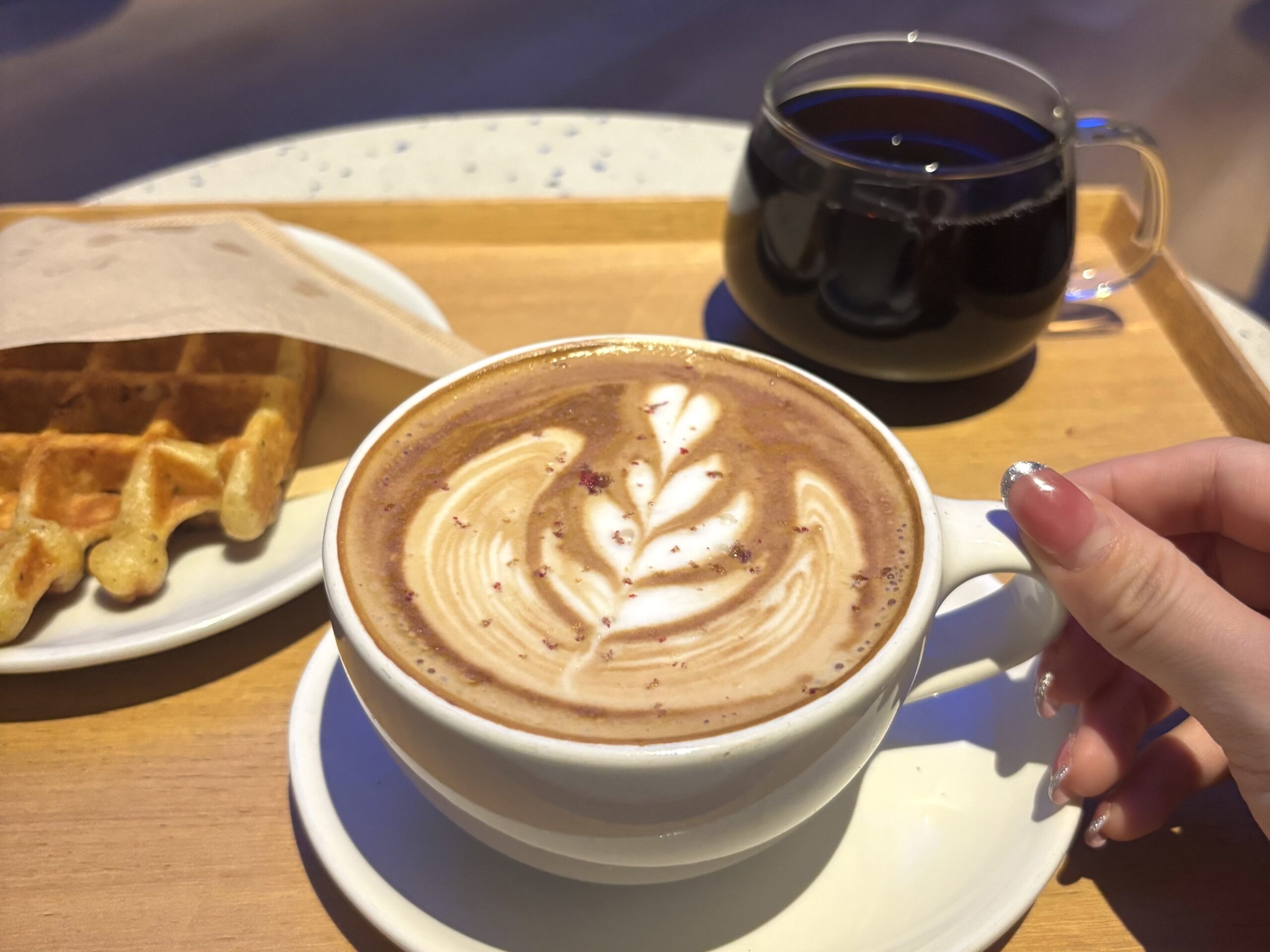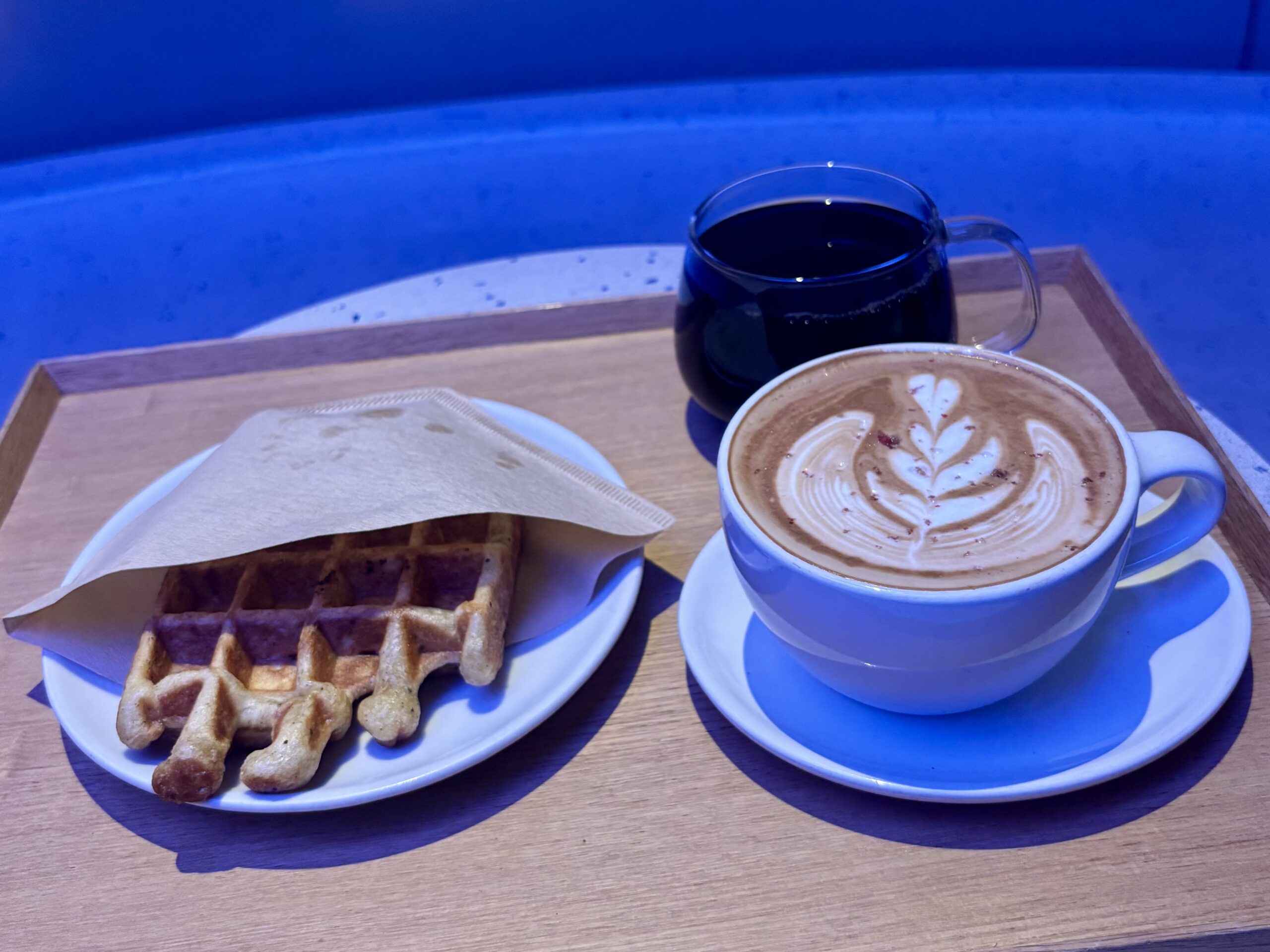 今回はホリデーシーズンのブレンドコーヒーとホットラテ、焼きたてワッフルをチョイス♡