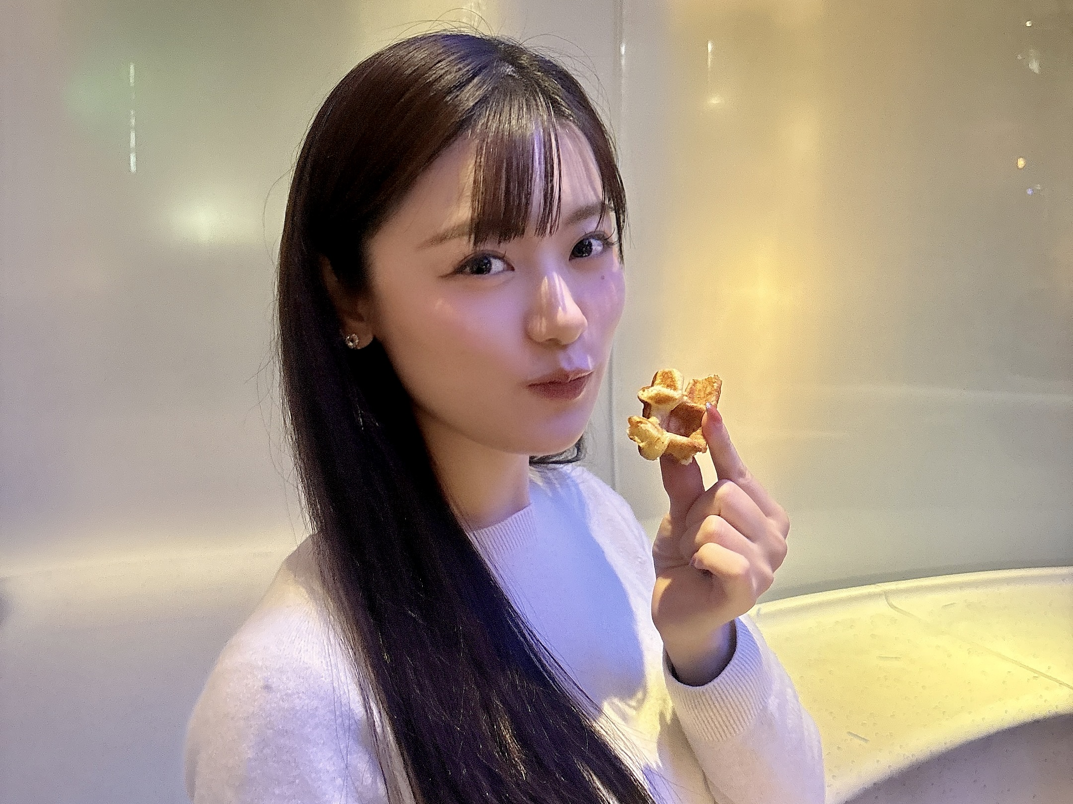 オーダーが入ってから一枚一枚丁寧に焼き上げられるワッフルは、外はサクッ、噛むとふわっとしていて弾力もありボリューミー!