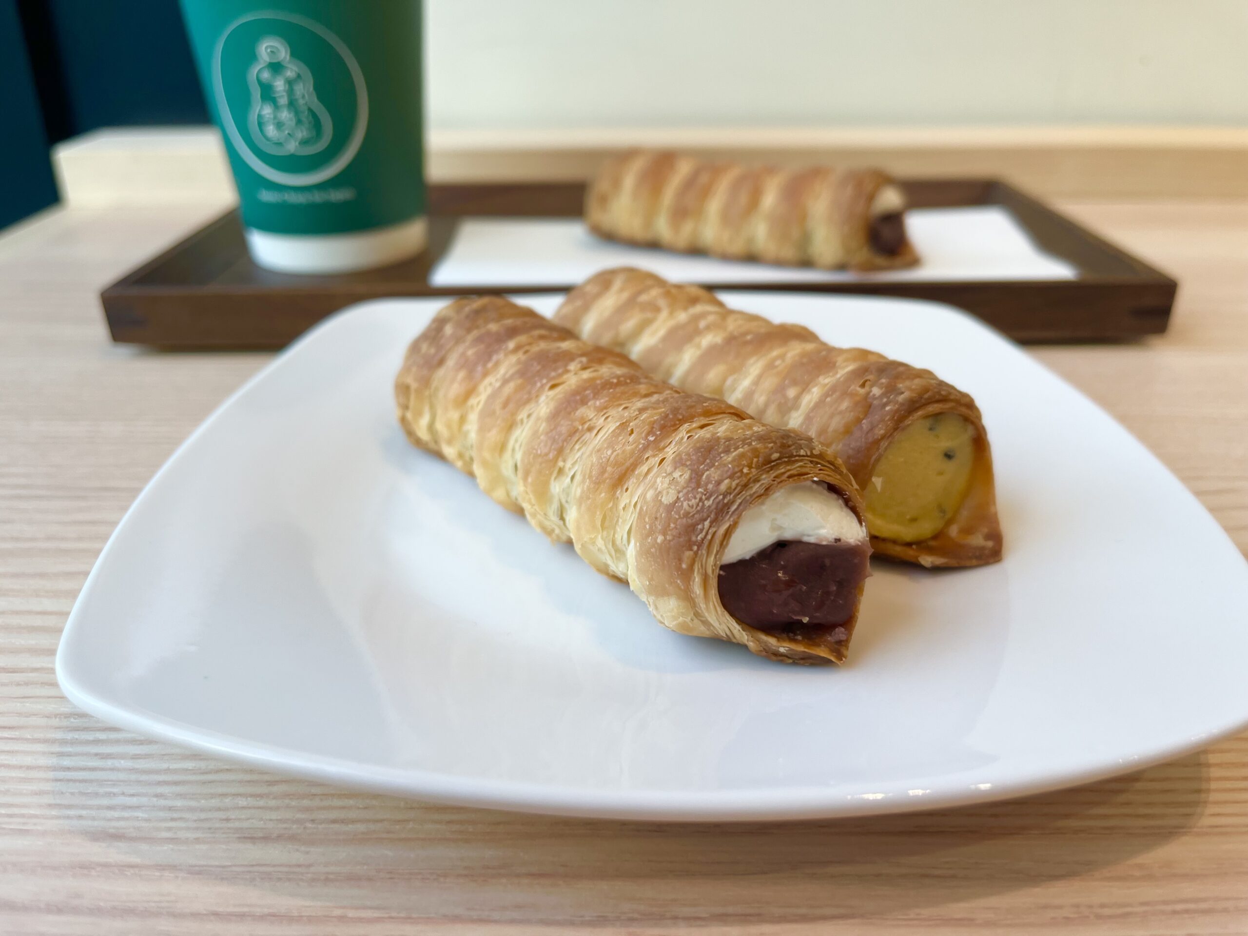 サクサクと香ばしく焼き上げられたコルネ生地にひと口かじると、上品な甘さの和三盆クリームがふわりと広がります。