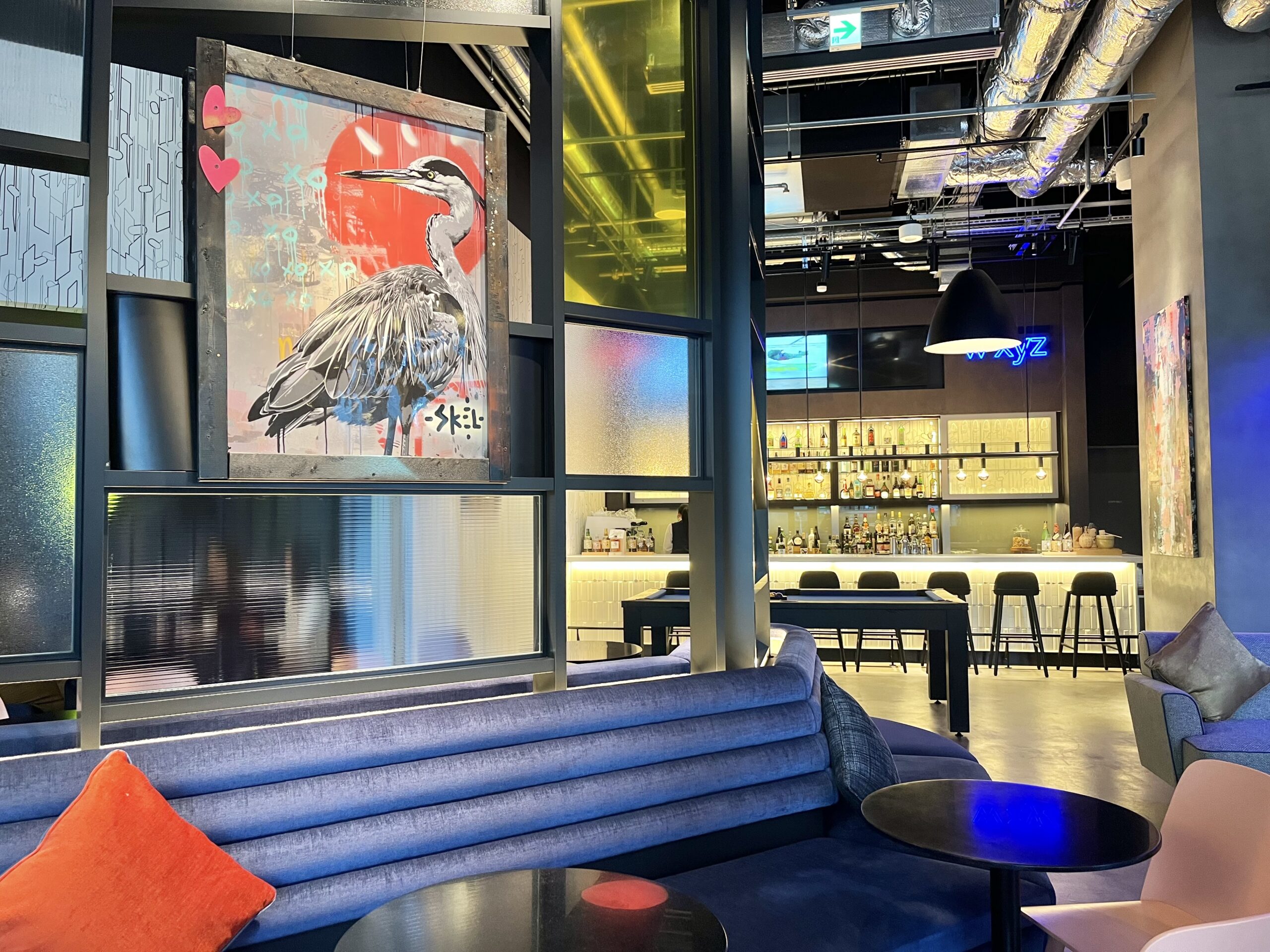ポップでカラフルな空間が魅力のミュージックバー「w xyz Bar」です。
