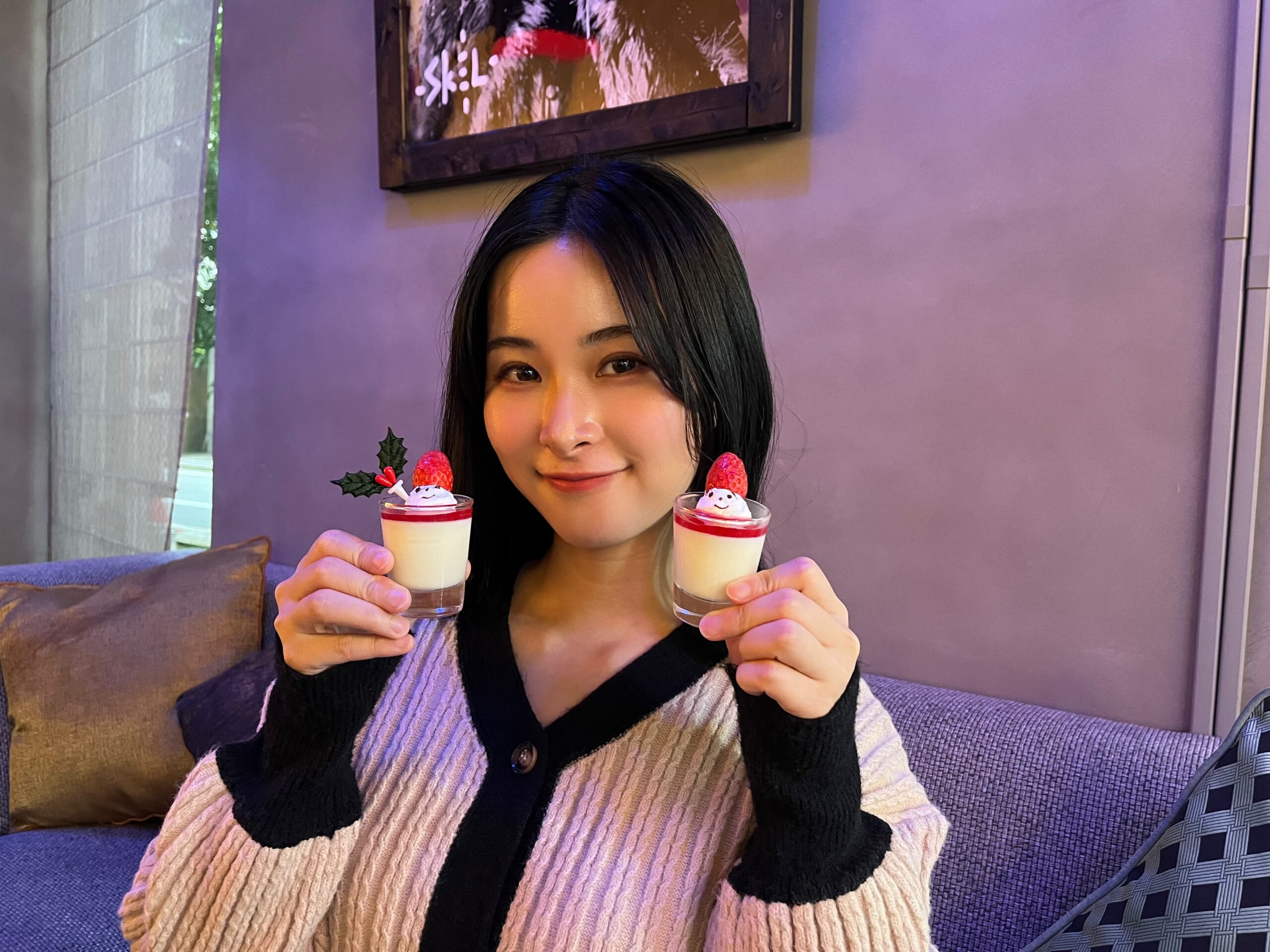 「苺ソースのパンナコッタ」には、苺の帽子を被った小さなサンタがちょこんと乗っています。