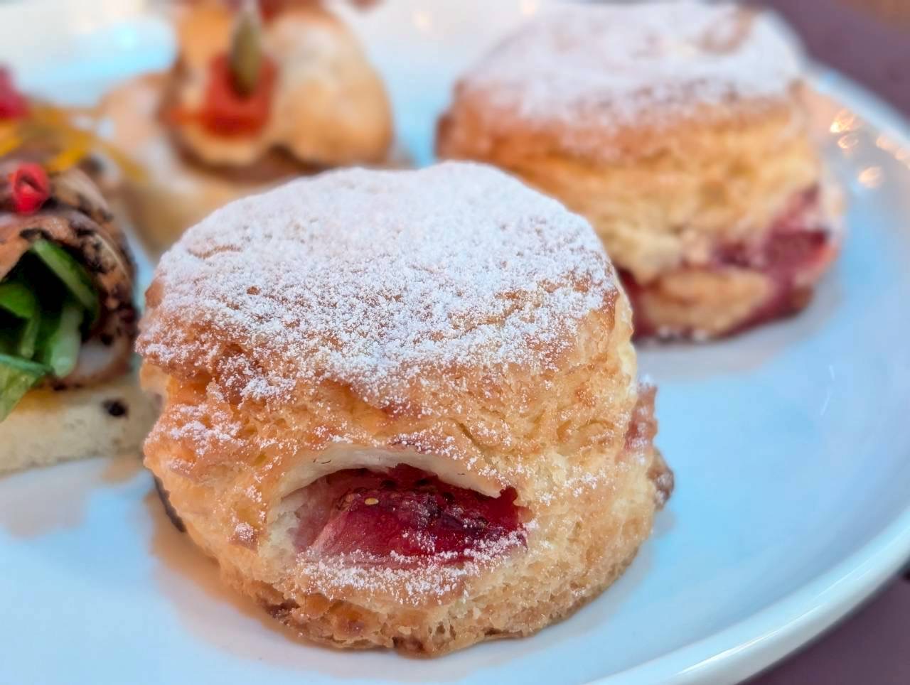 「苺とホワイトチョコのスコーン」は、外はさっくり、中はしっとりと焼き上げられています。