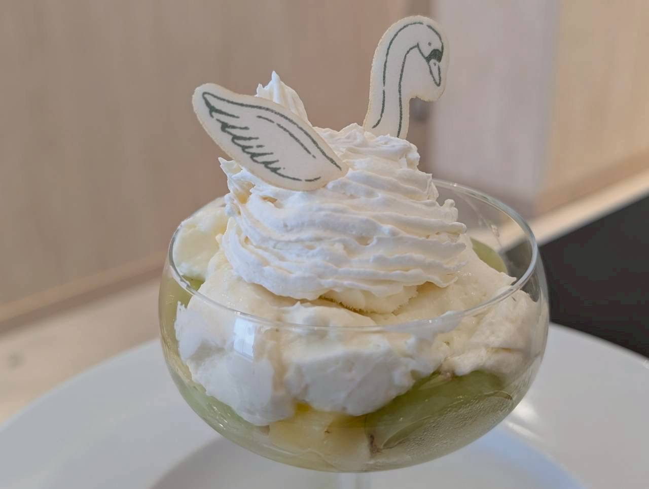 爽やかなヨーグルトアイスとフルーツを添えたパンナコッタ。