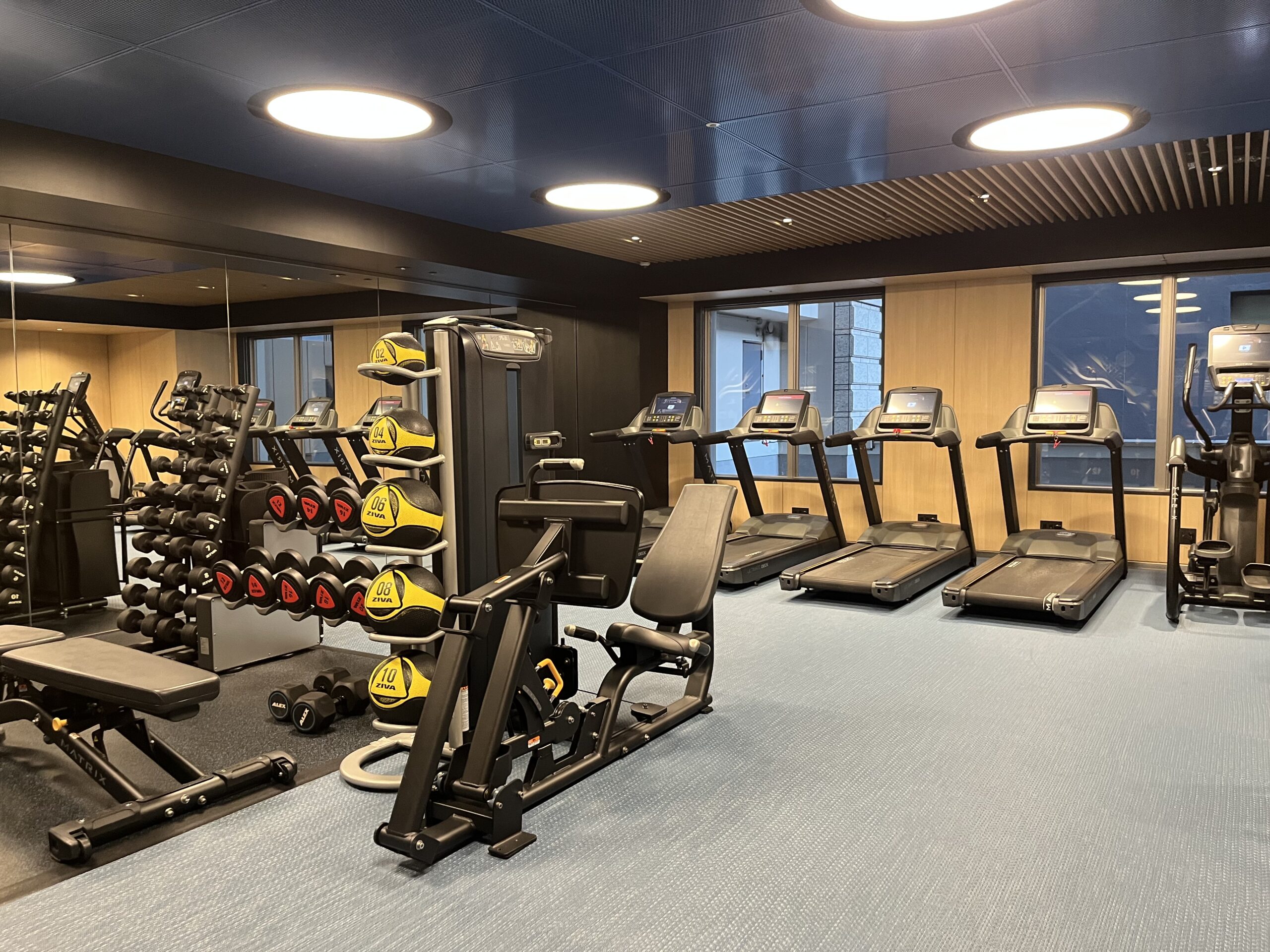 24時間営業のジム「Re:charge」には、ウェイトマシン、エクササイズバイク、有酸素運動マシンなど設備も充実しています。