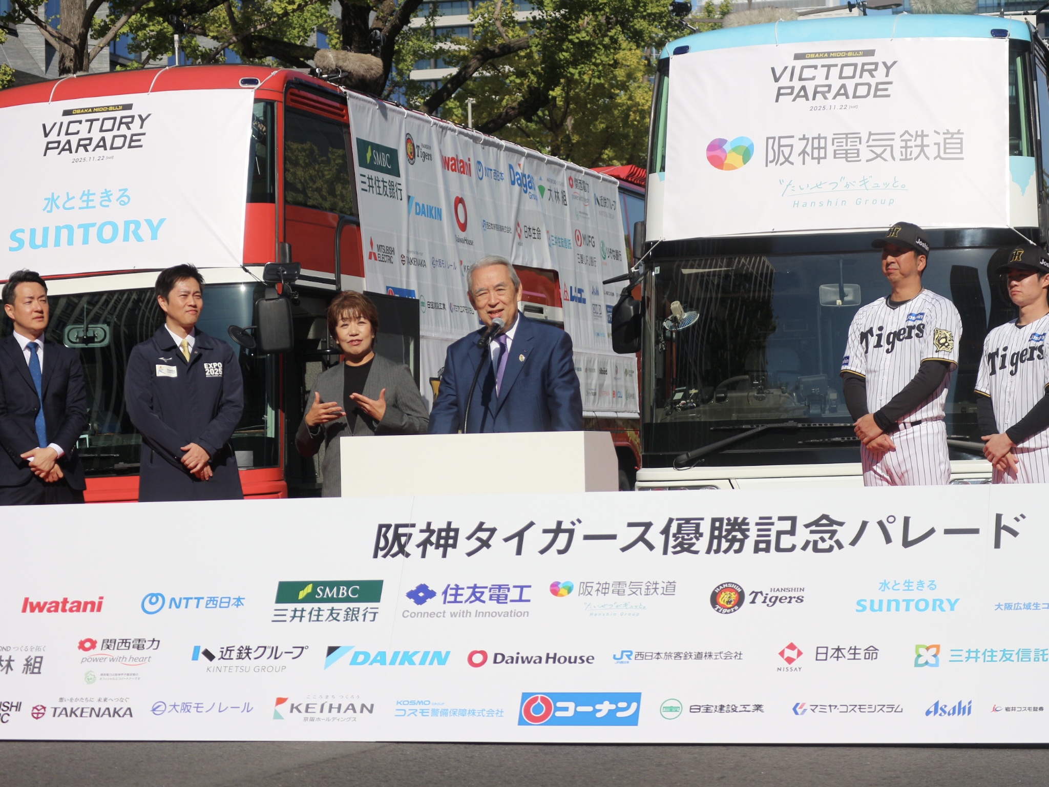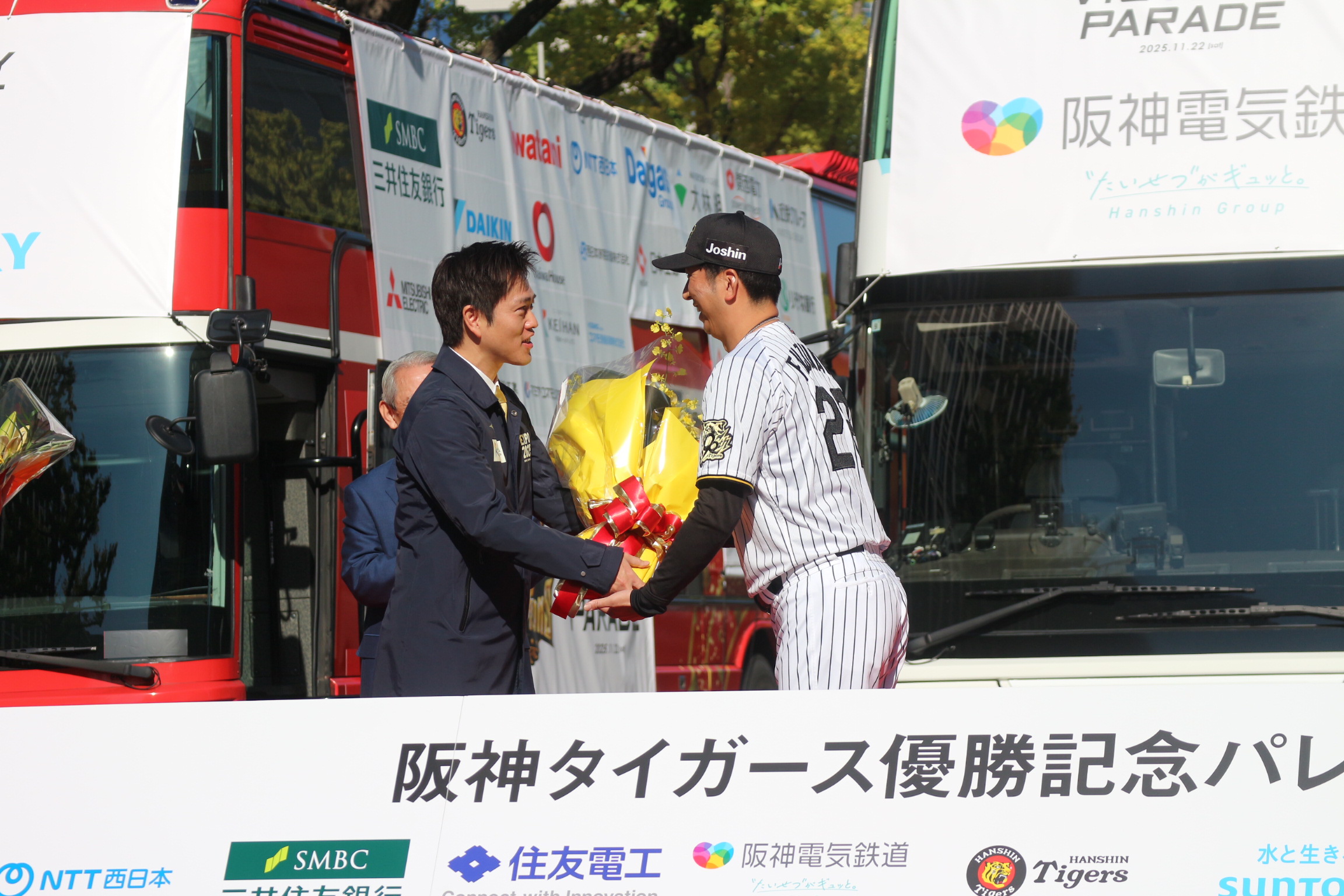 吉村知事:「阪神タイガースの優勝を皆さんと祝うことができて良かったと思います。来年も優勝と日本一を目指して頑張ってほしいと思います。」