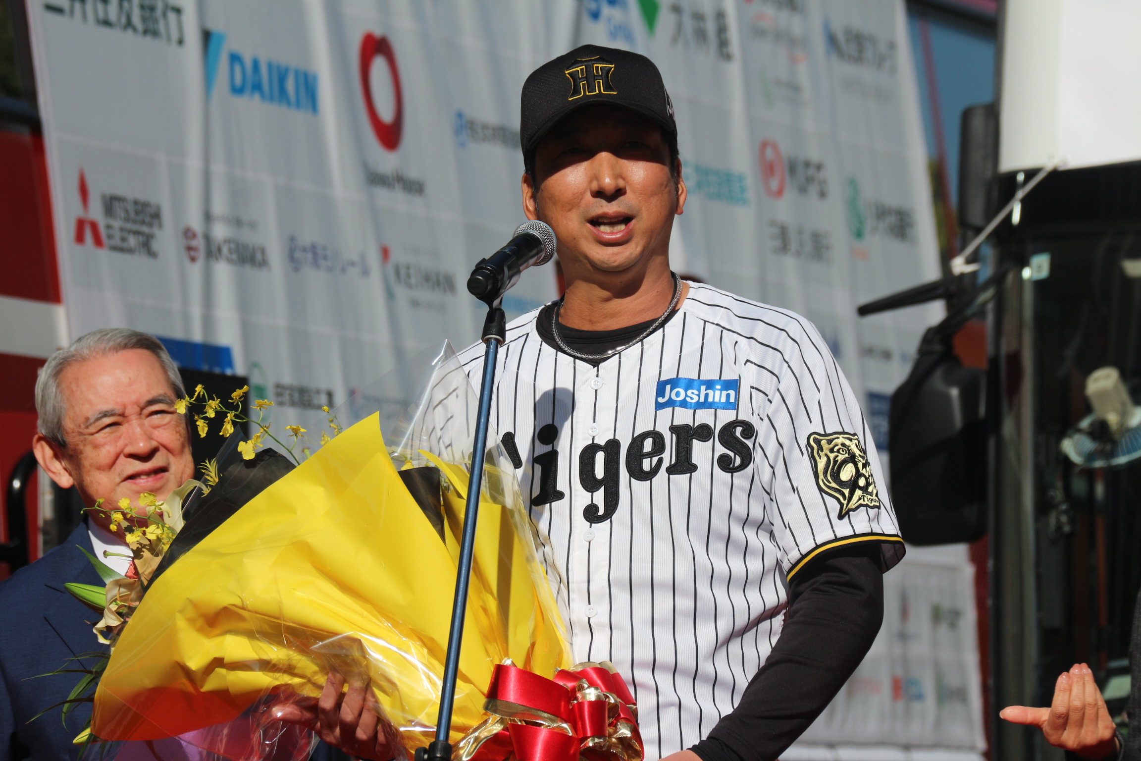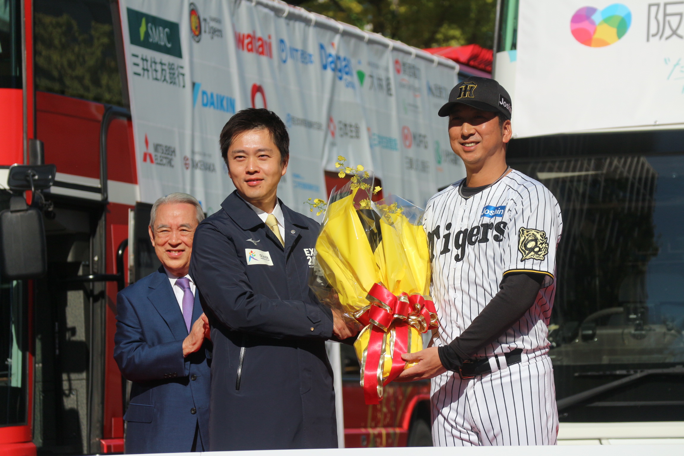ABCテレビ「虎バンSP!セ・リーグ優勝記念特番!!虎の道が導く栄光の御堂筋パレード!!!」のゲストとして元阪神タイガース 糸井嘉男選手、元阪神タイガース 桧山進次郎選手、元NMB48 山本彩さんが会場に登場!
