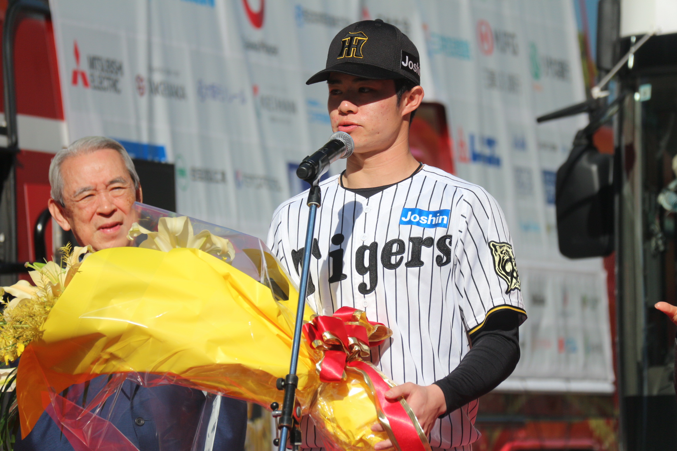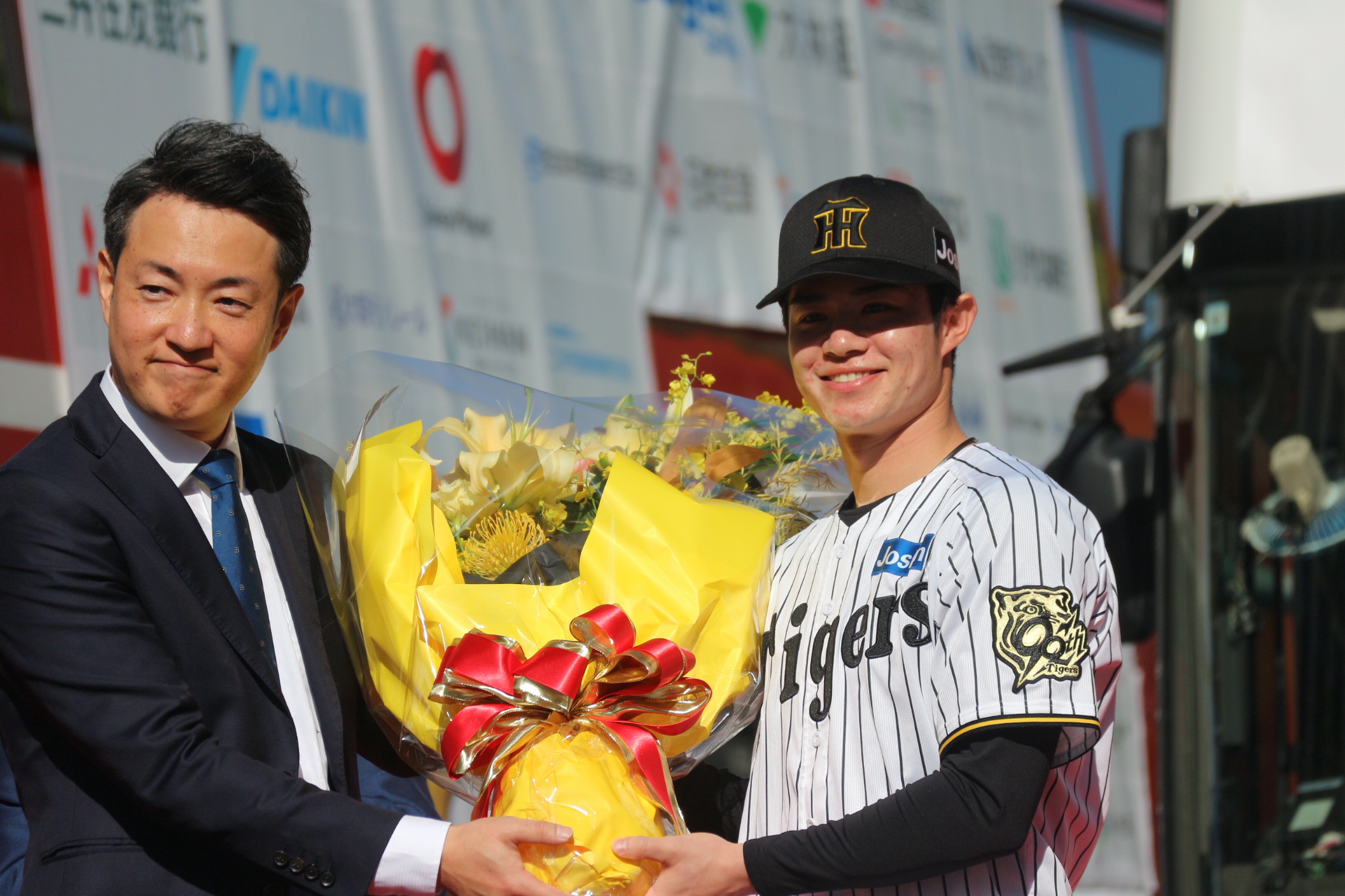 中野選手選手は「球団創設90周年という節目の年に2年ぶりのリーグ優勝を史上最速で達成できたことをとても嬉しく思っております。それは、ファンの皆さんの声援があったからこそと思っています。すごく良い天気の中でパレードができることをとても嬉しく思っています。」と述べ、ファンへの感謝の気持ちを伝えていました!