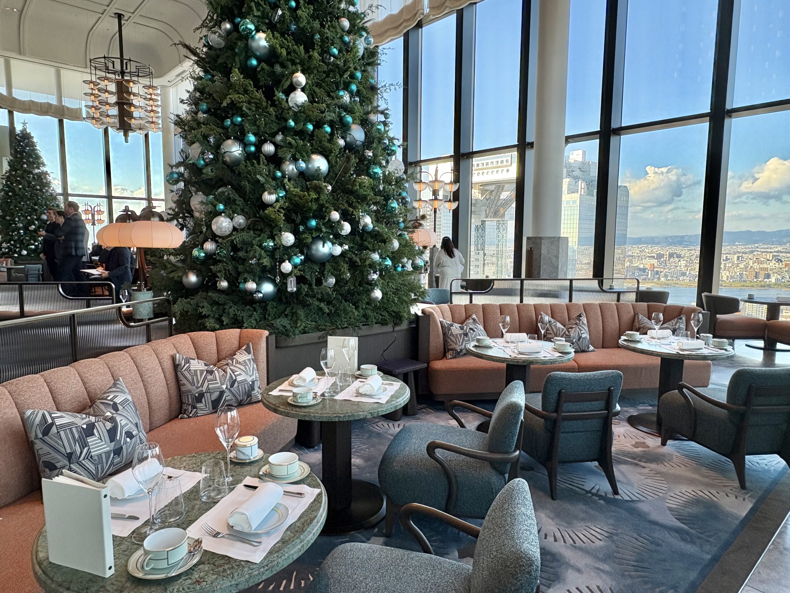 入口からすでに静かな空気感と高級感があり、ひとたびラウンジ&バー「Peacock Alley」(29階/28階)に足を踏み入れると、窓越しに広がる大阪の街並みとともに、そこはもう“特別な冬”の空気でした。