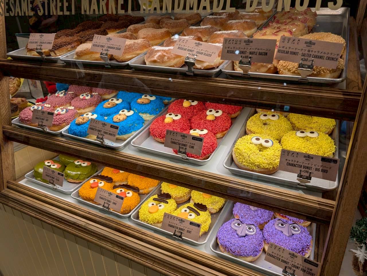 キャラクターグッズを購入できるマーケットと、キャラクタードーナツを食べることができるカフェの二つで構成されています♡