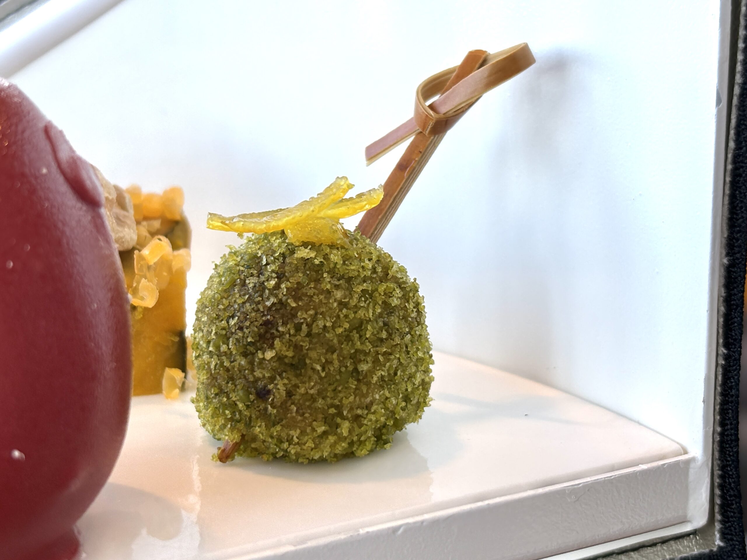 苔玉のような見た目の「ズワイガニとポルチーニクリーム」。
