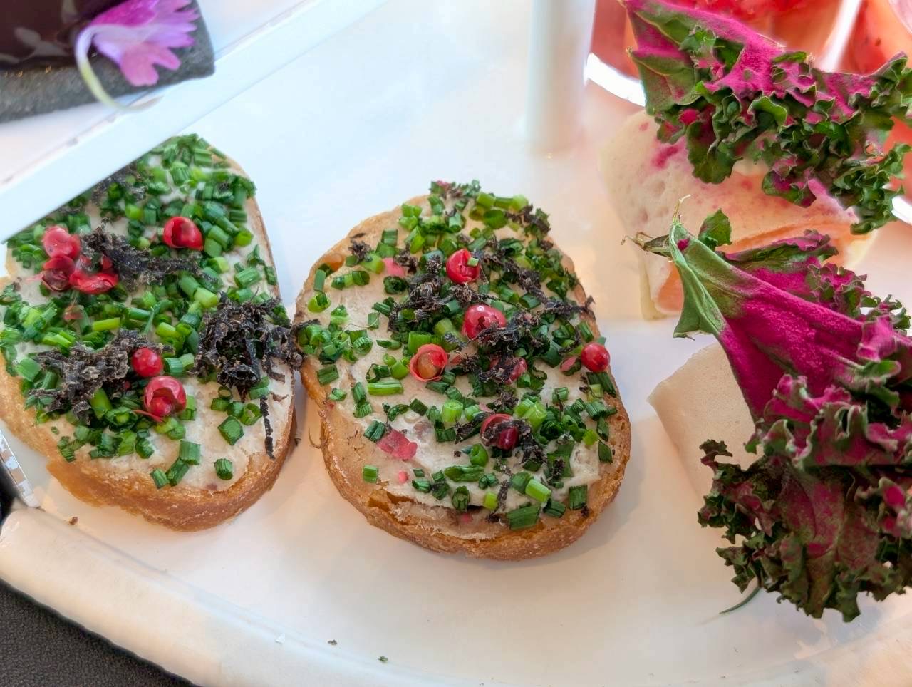 北欧の冬に咲く花をイメージした「サステナブルサーモンクレープ」はとても可愛いく癒される♡
