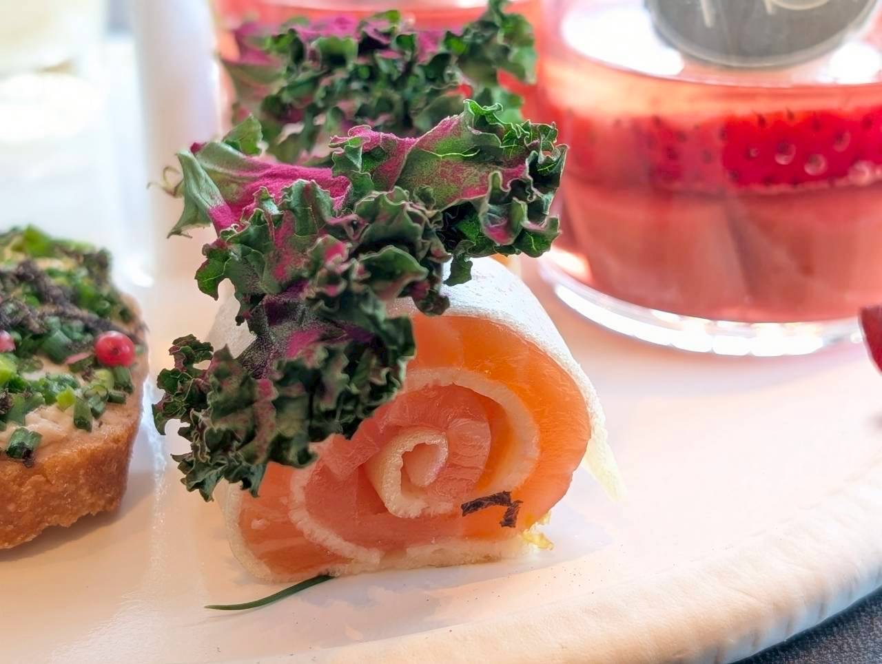 サーモンにビーツとケールで香りづけされていて、ひと口でぱくっといただきました♪