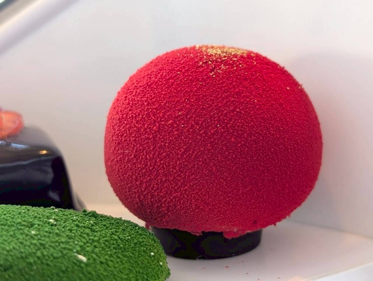 赤く綺麗なスイーツは、ニコライ バーグマンならではの半球体のフラワーアレンジメントをストロベリームースで表現した「ルビーフラワー」。