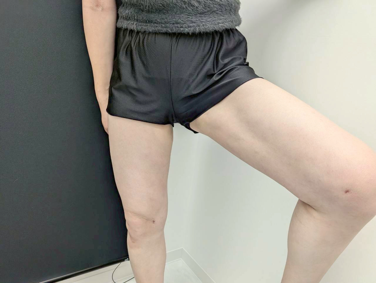 以前のもっこりした脂肪が減り、脚のラインが滑らかになっているのがわかります。