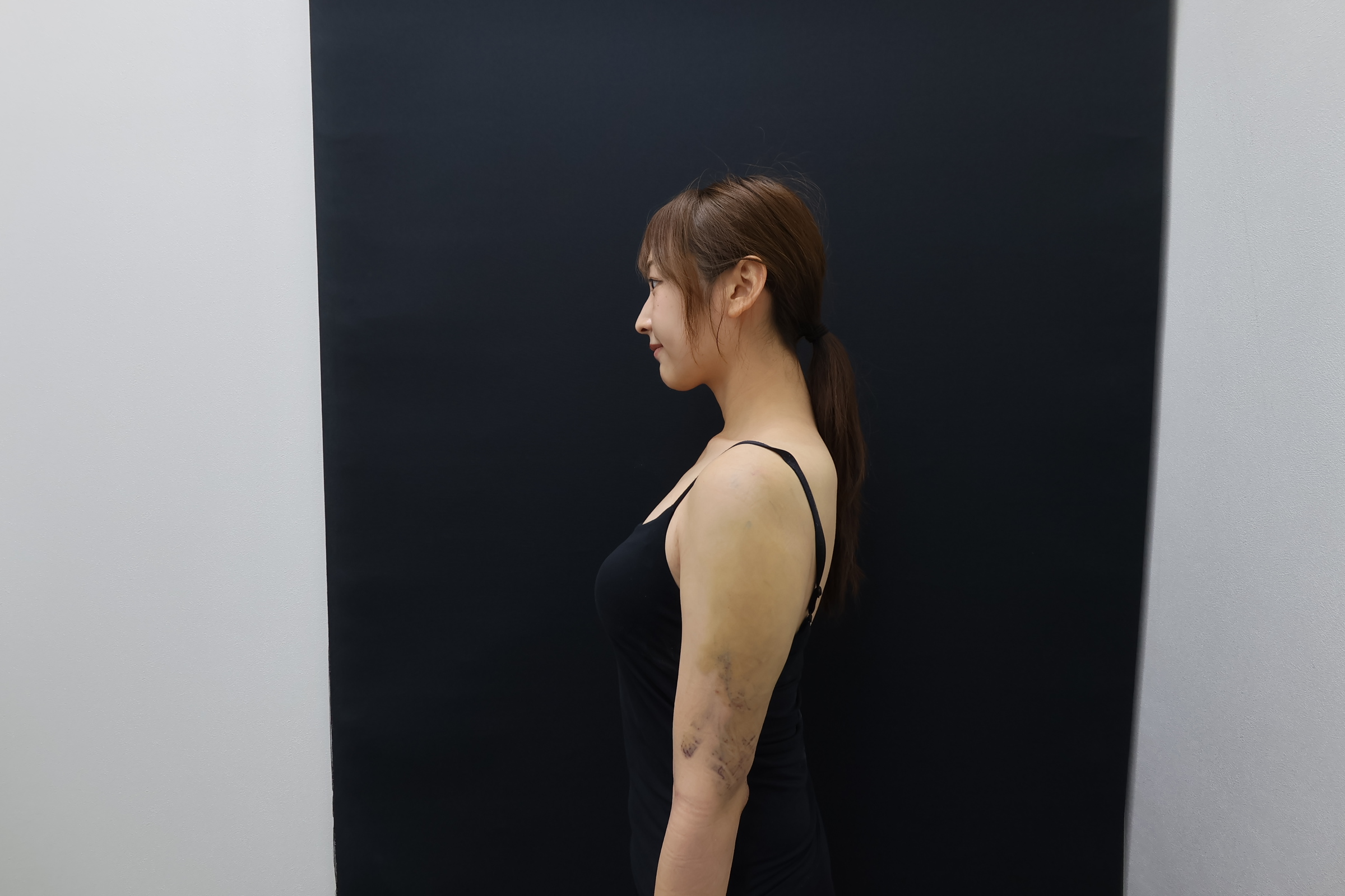 青アザが少しずつ黄色に変化してきて、だいぶマシにはなっていますが、まだまだ痛々しい印象ですね