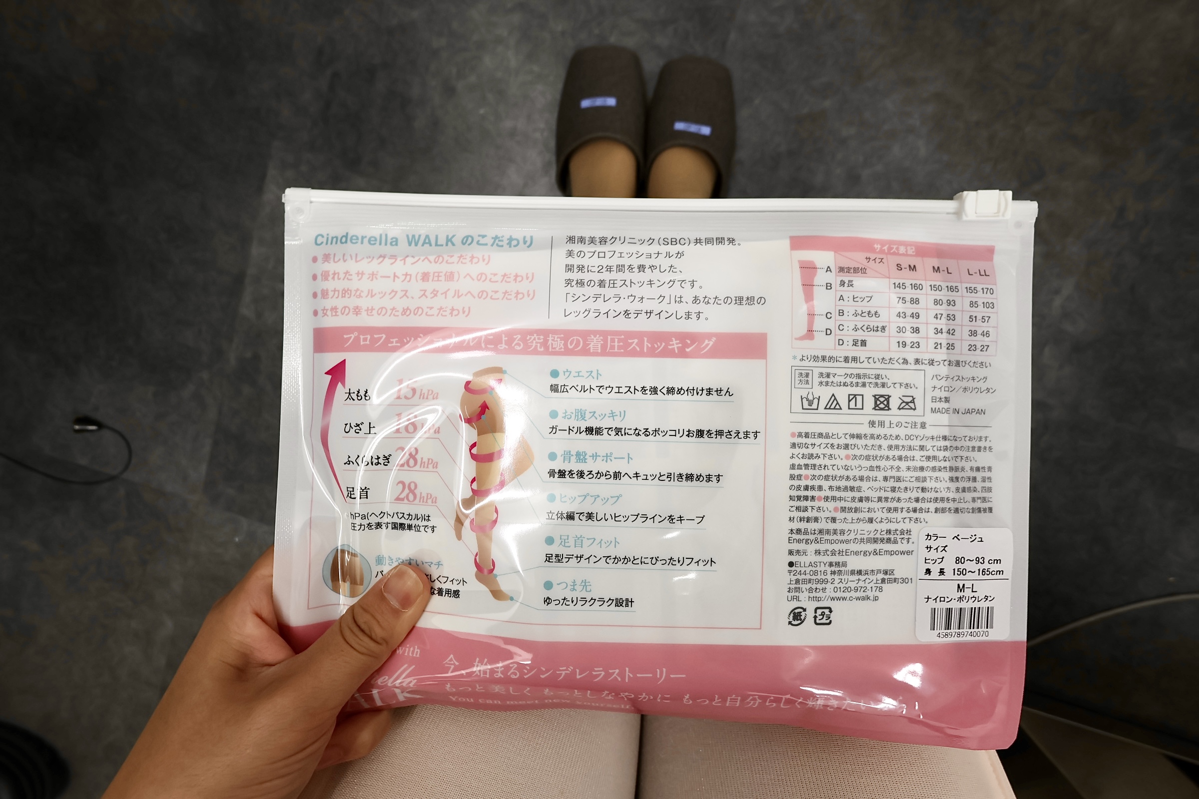 また、圧迫着の影響で歩くと少しギュッと締め付けられる感覚があり、いつもより歩きにくく感じました。