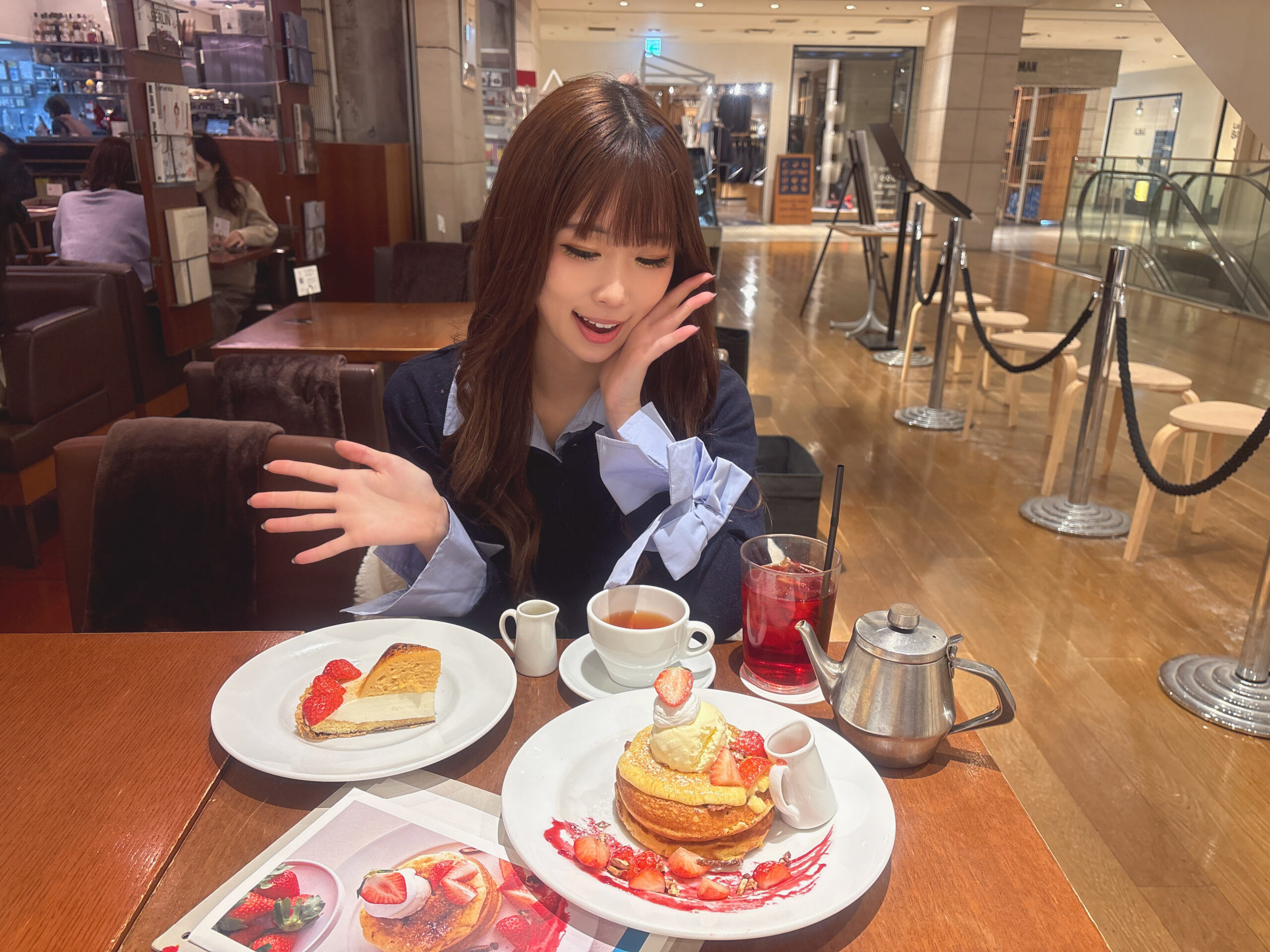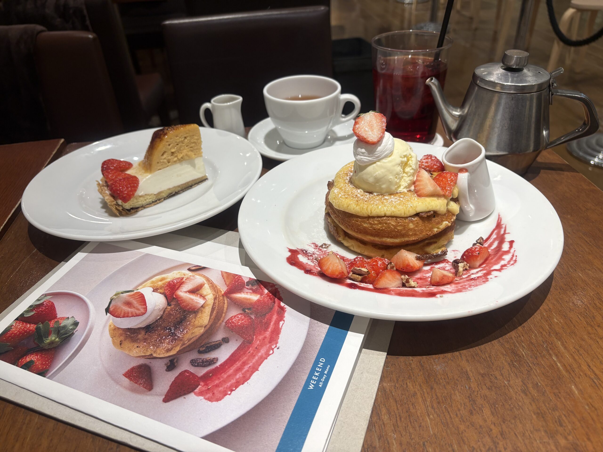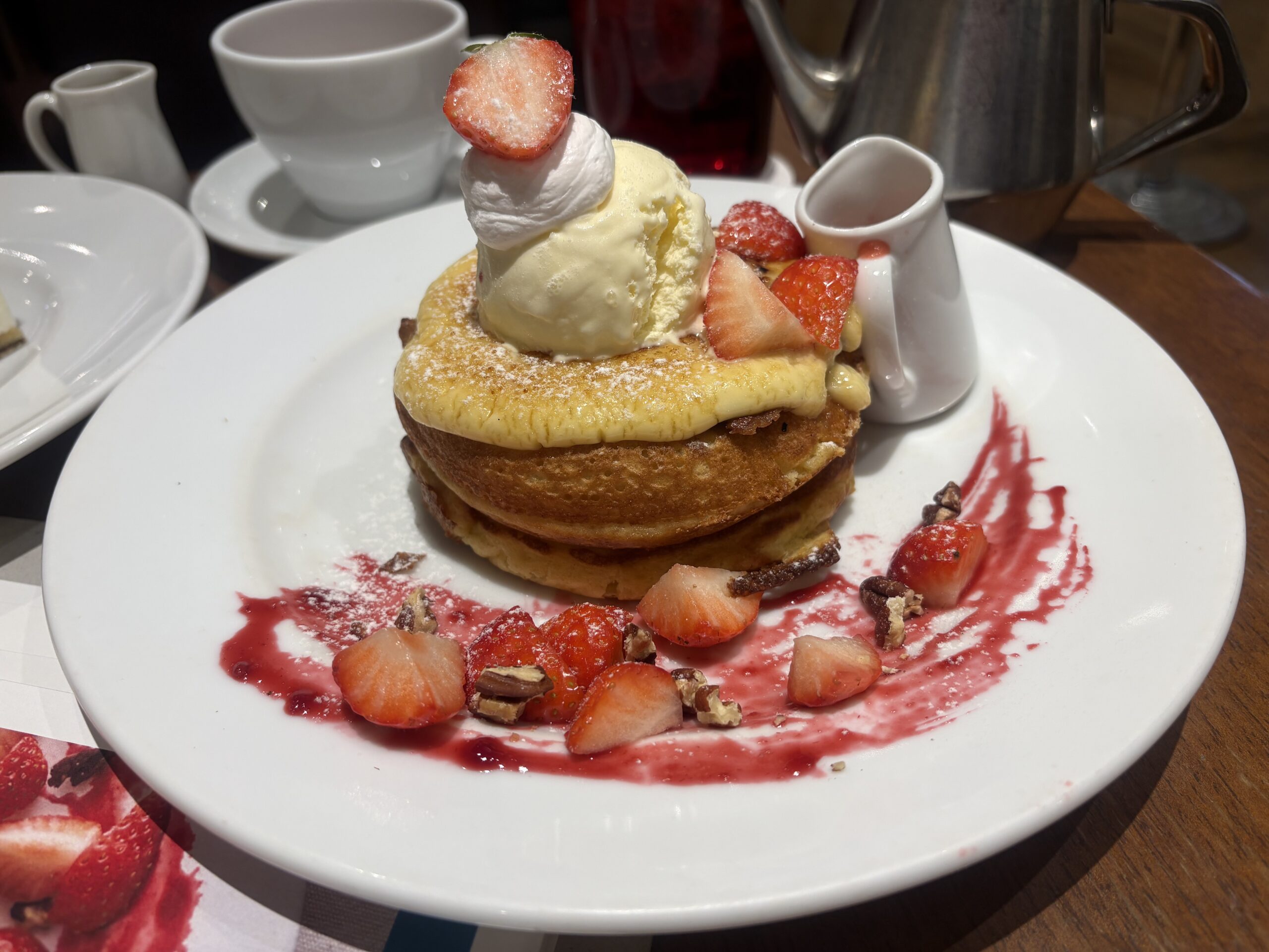 まさに“ショートケーキをパンケーキで楽しむ”感覚で、いちごの香りが最後まできれいに残る一皿でした。