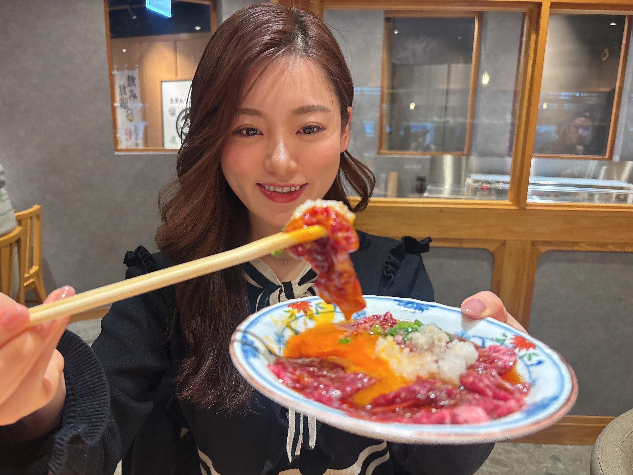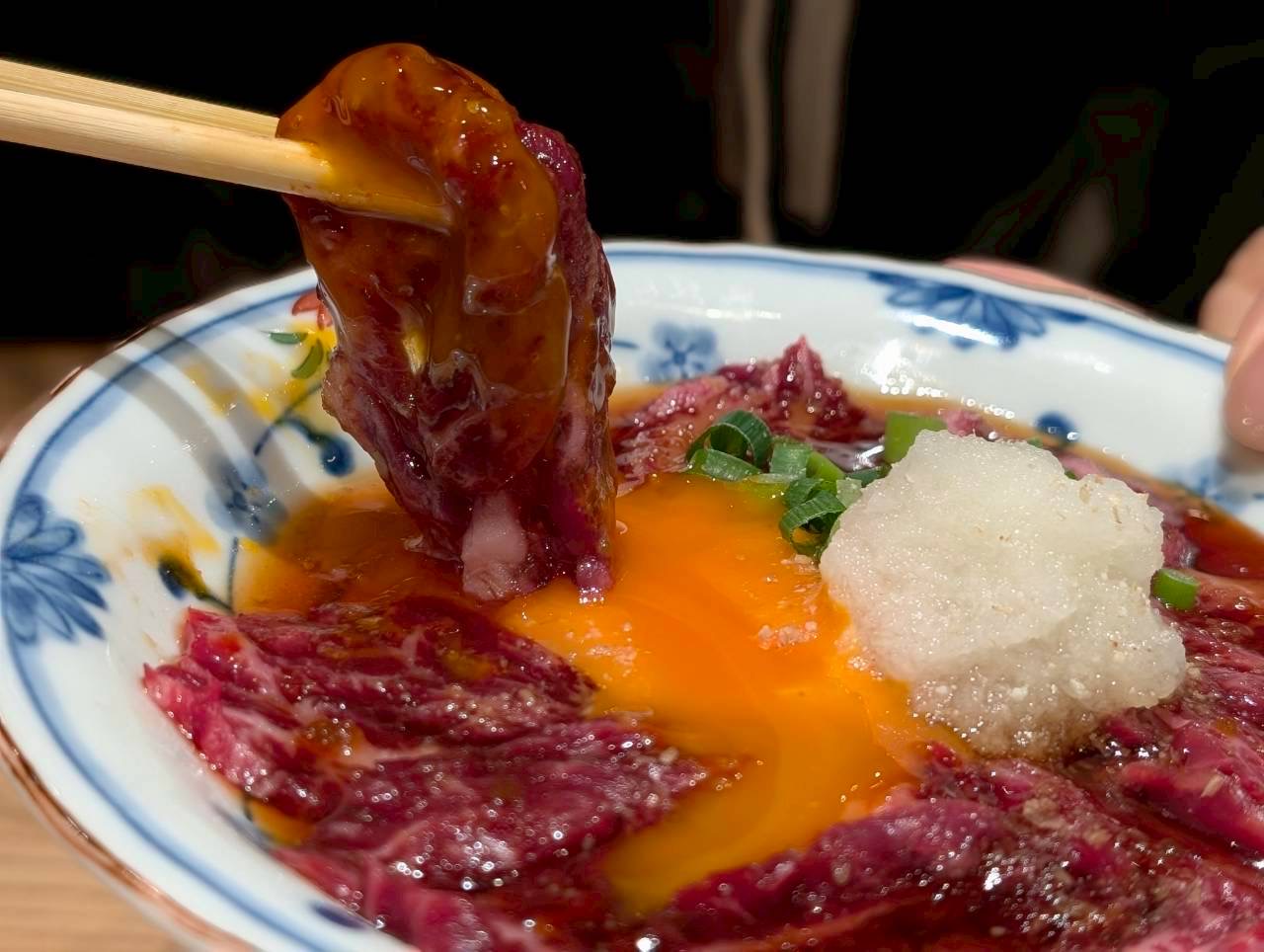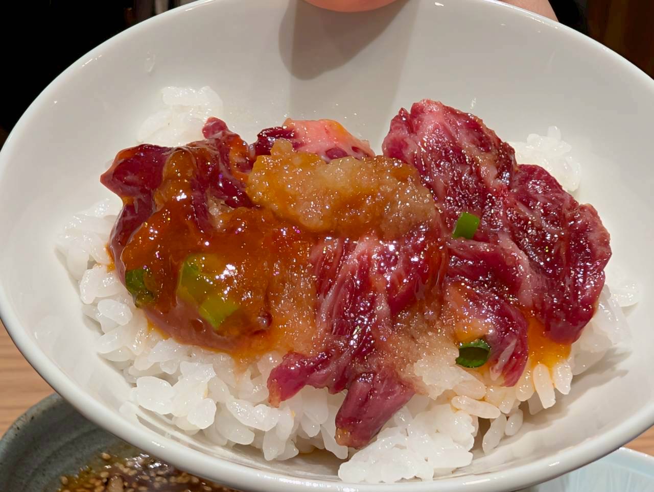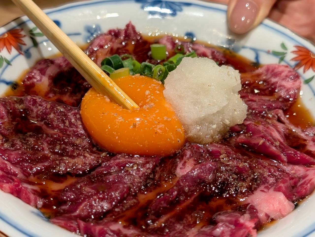 特選和牛ハラミユッケを銀シャリの上に乗せるともうこれは、たまらんやつです♡