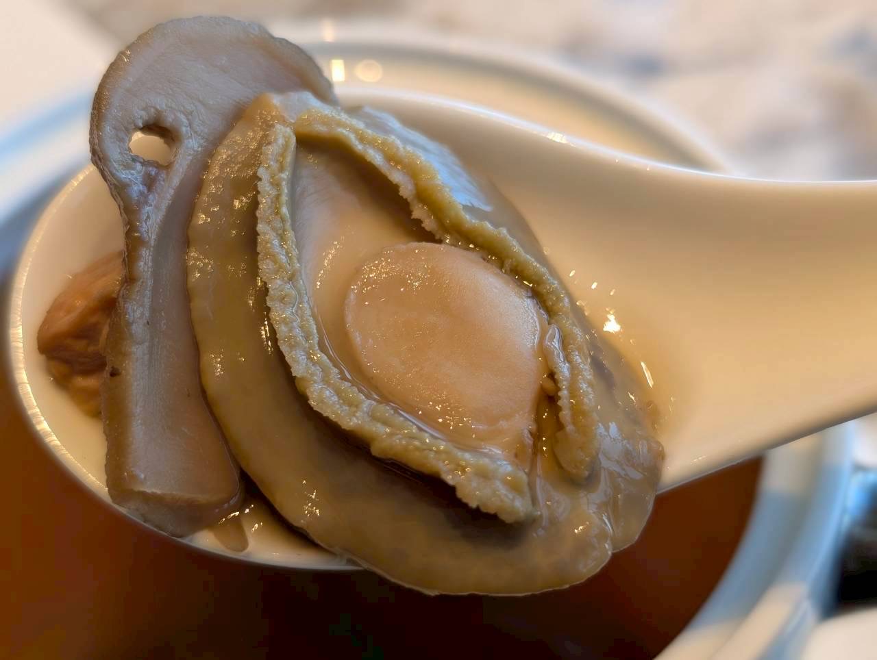 鮑、松茸、クコの実入り豚すね肉のスープ