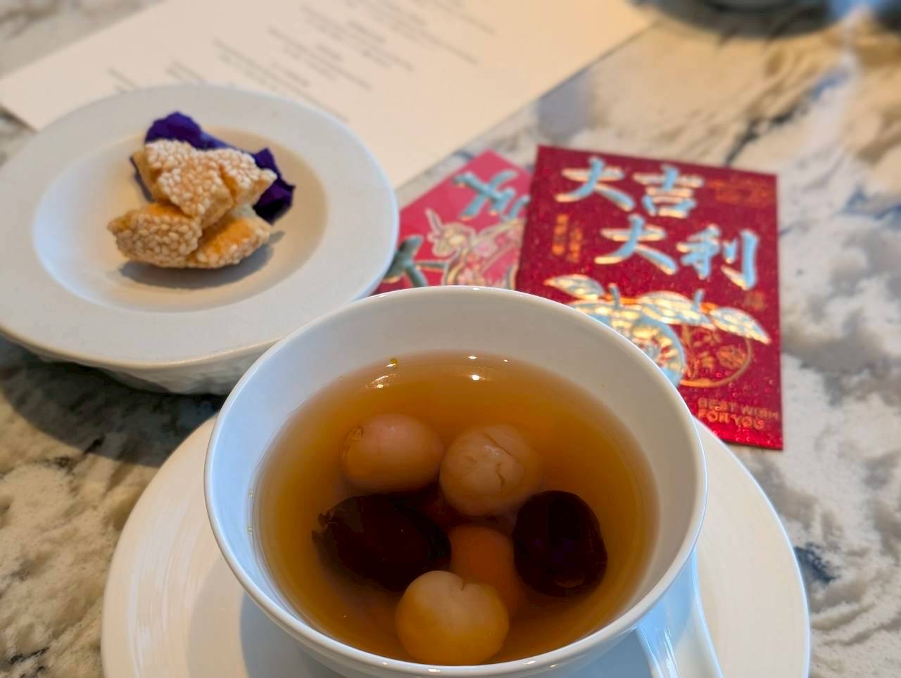 ナツメ、蓮の実、龍眼、うずら卵のスープデザート