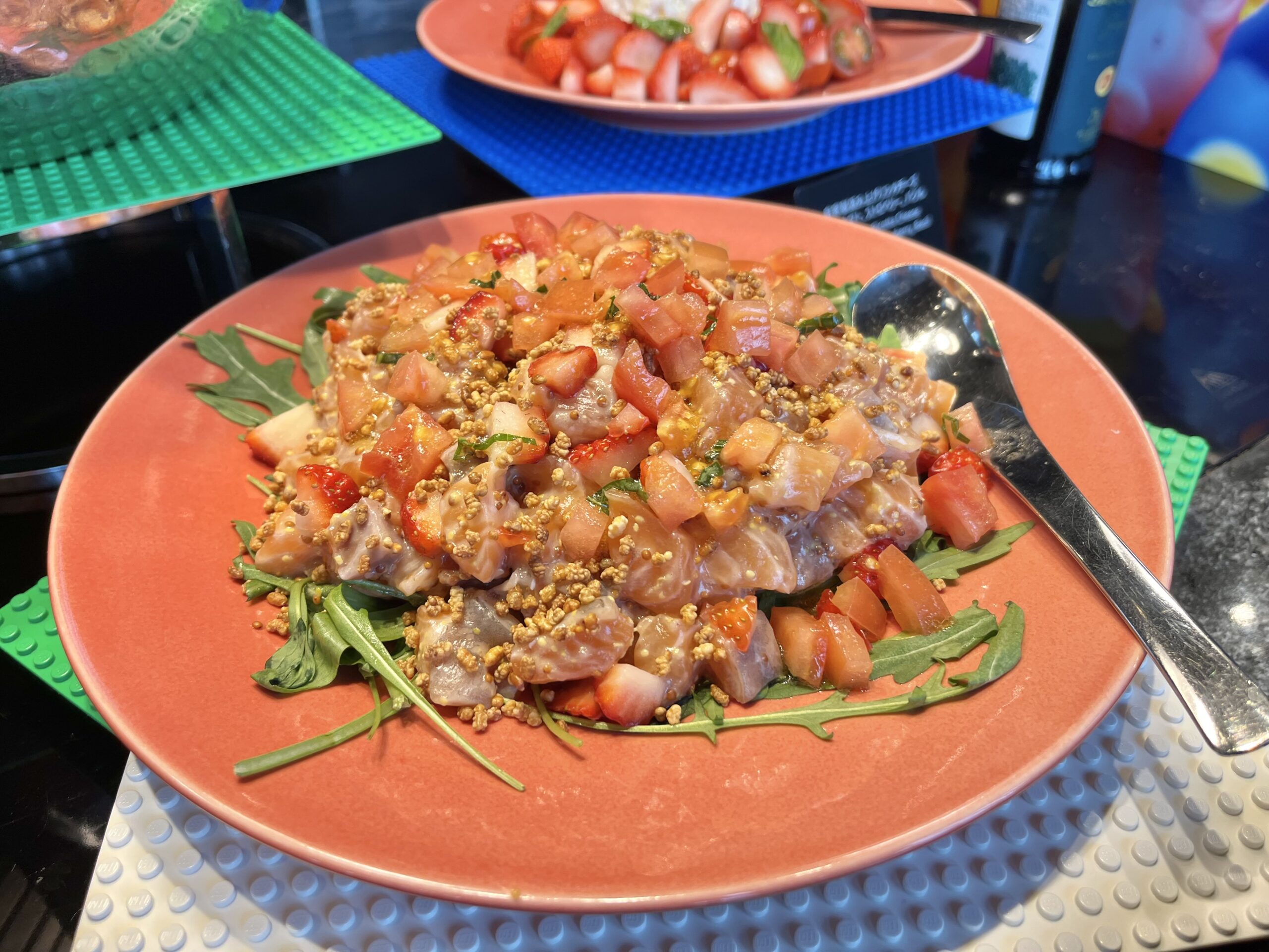 サーモンの旨みがたまらない「サーモンとストロベリーのタルタル」です。