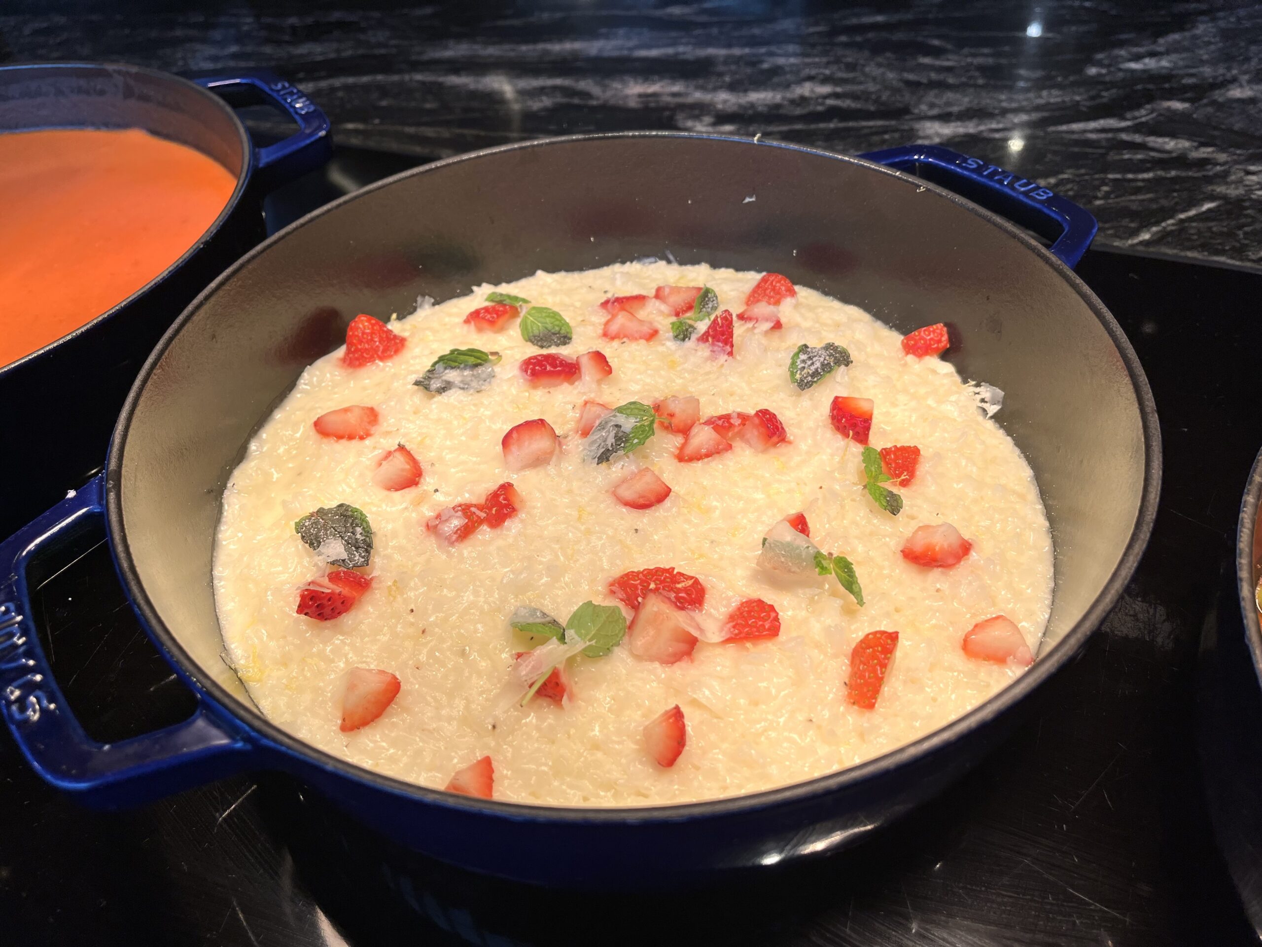 「レモンミントリゾット、ストロベリーとペコリーノ」は、爽やかな香りが印象的です。