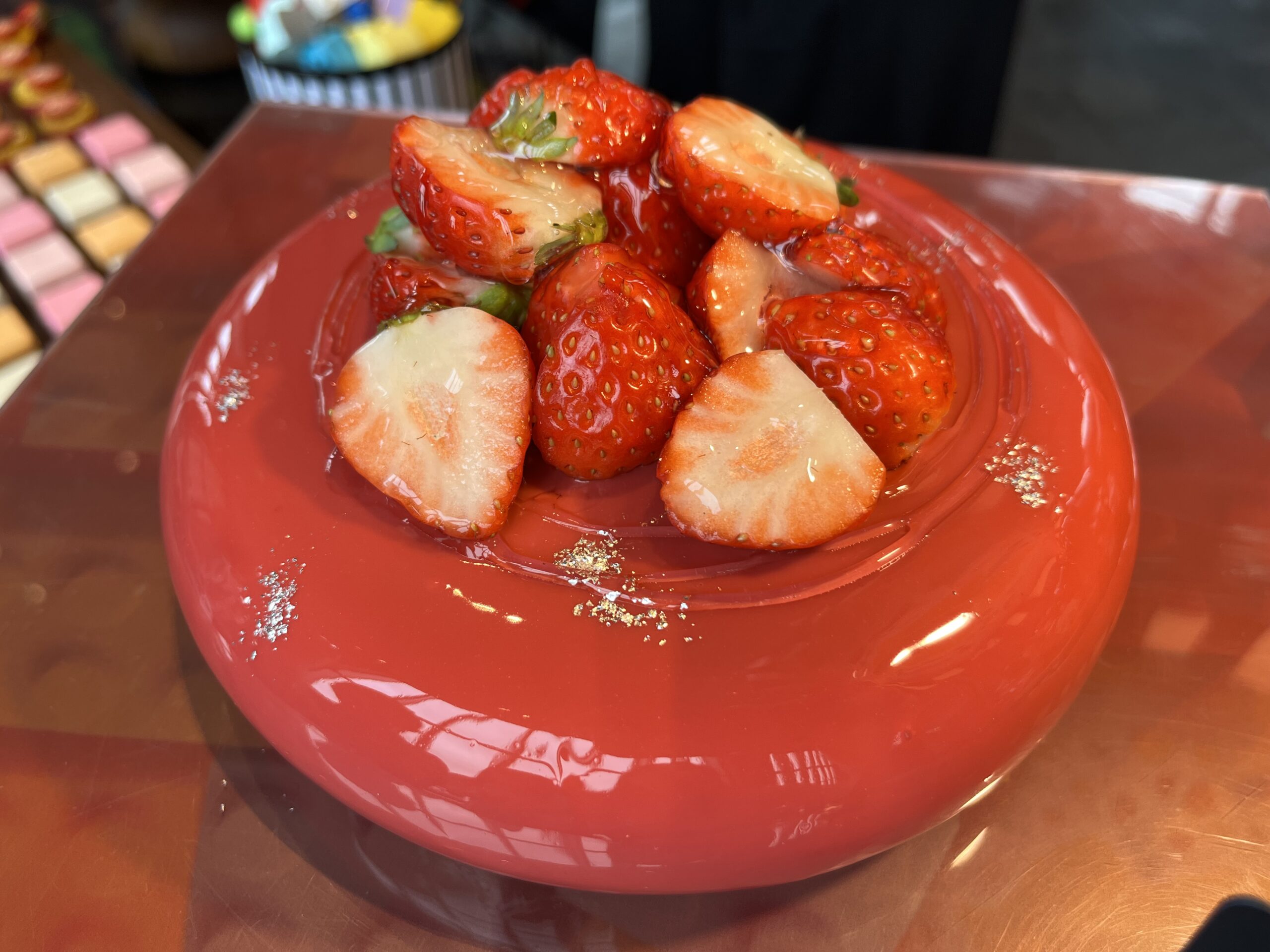 トップにのった鮮やかなストロベリーが華やかさを引き立てます。