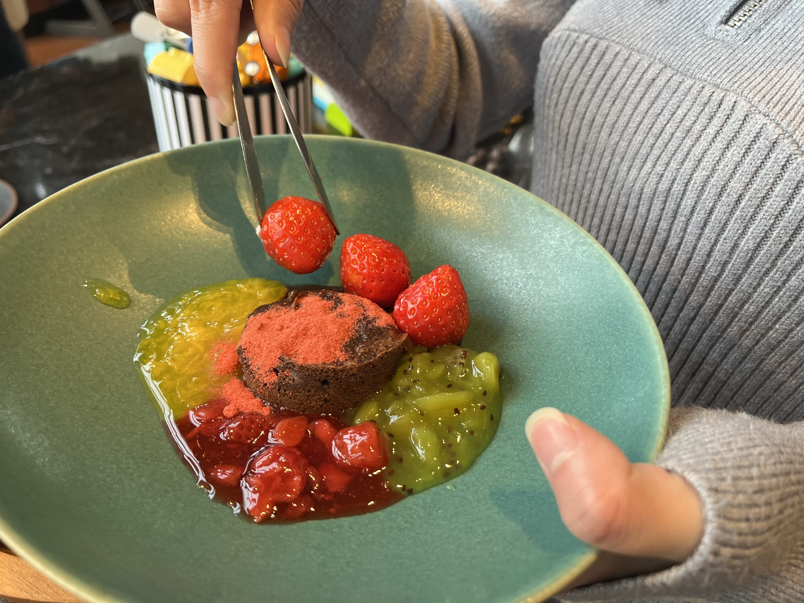 冷たくてみずみずしい果汁と温かくて濃厚なチョコレートのコントラストがなんとも絶妙でした。