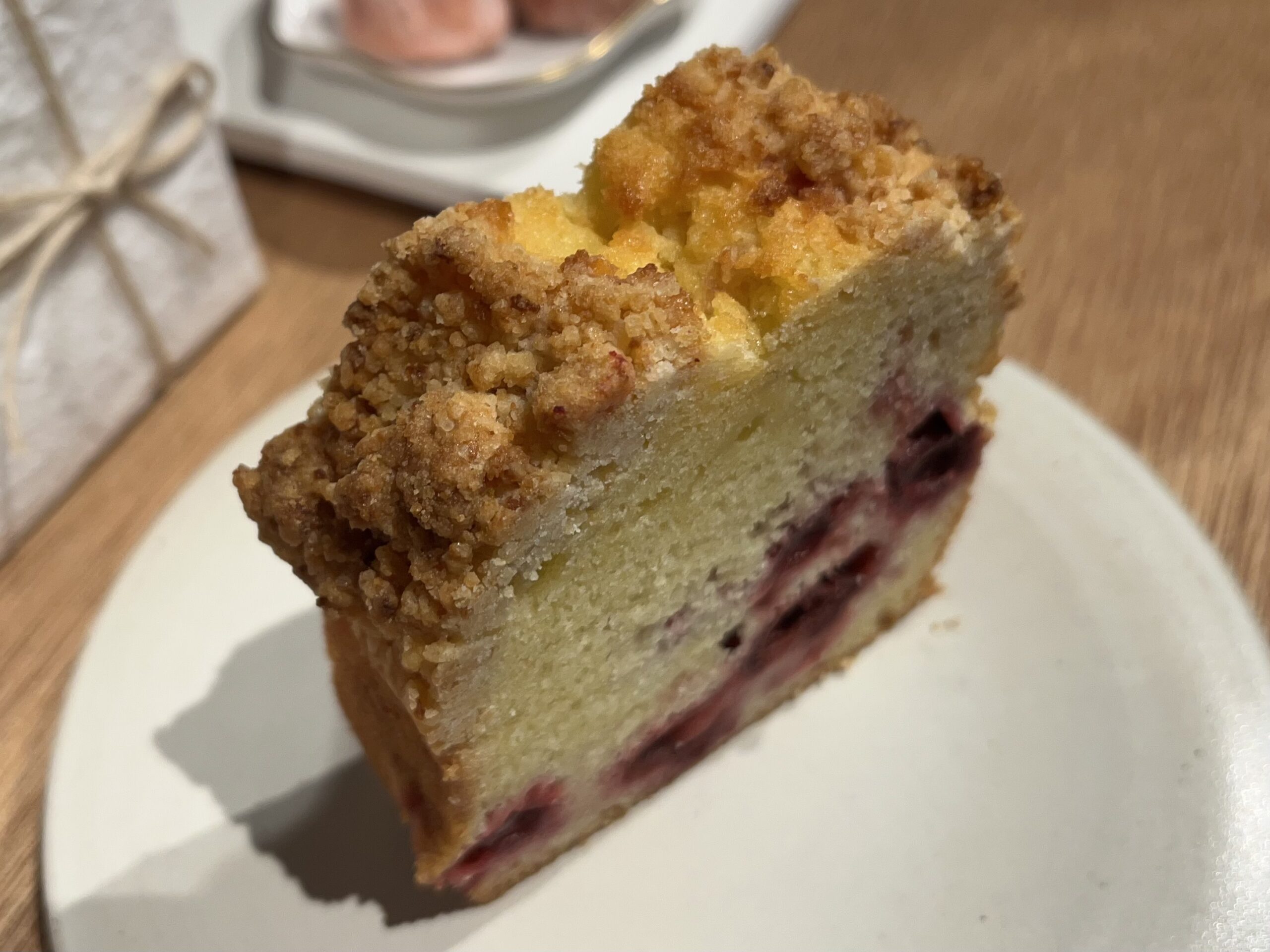 さらに、このケーキの魅力を引き上げているのが、バターとレモンゼストのクランブルです。