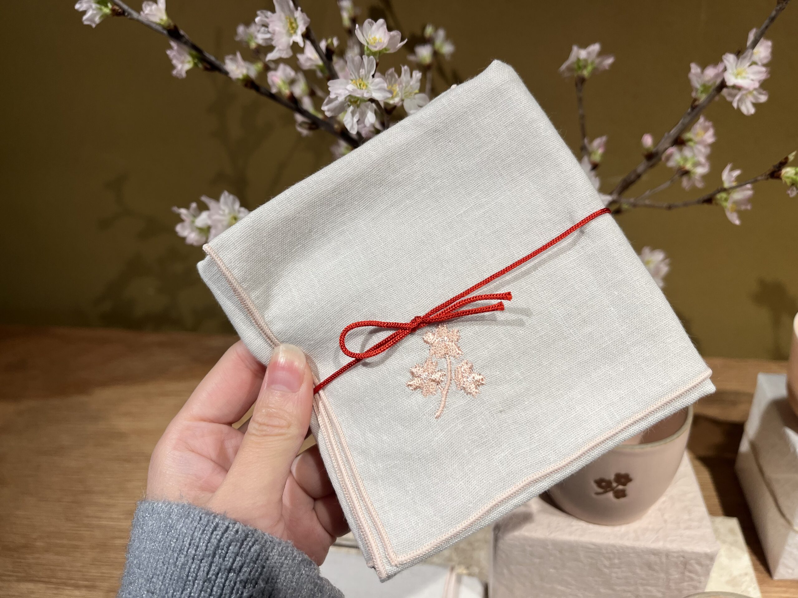 そして、「京東都」とのコラボで生まれたオリジナル刺繍ハンカチ―SAKURA―も登場しています。