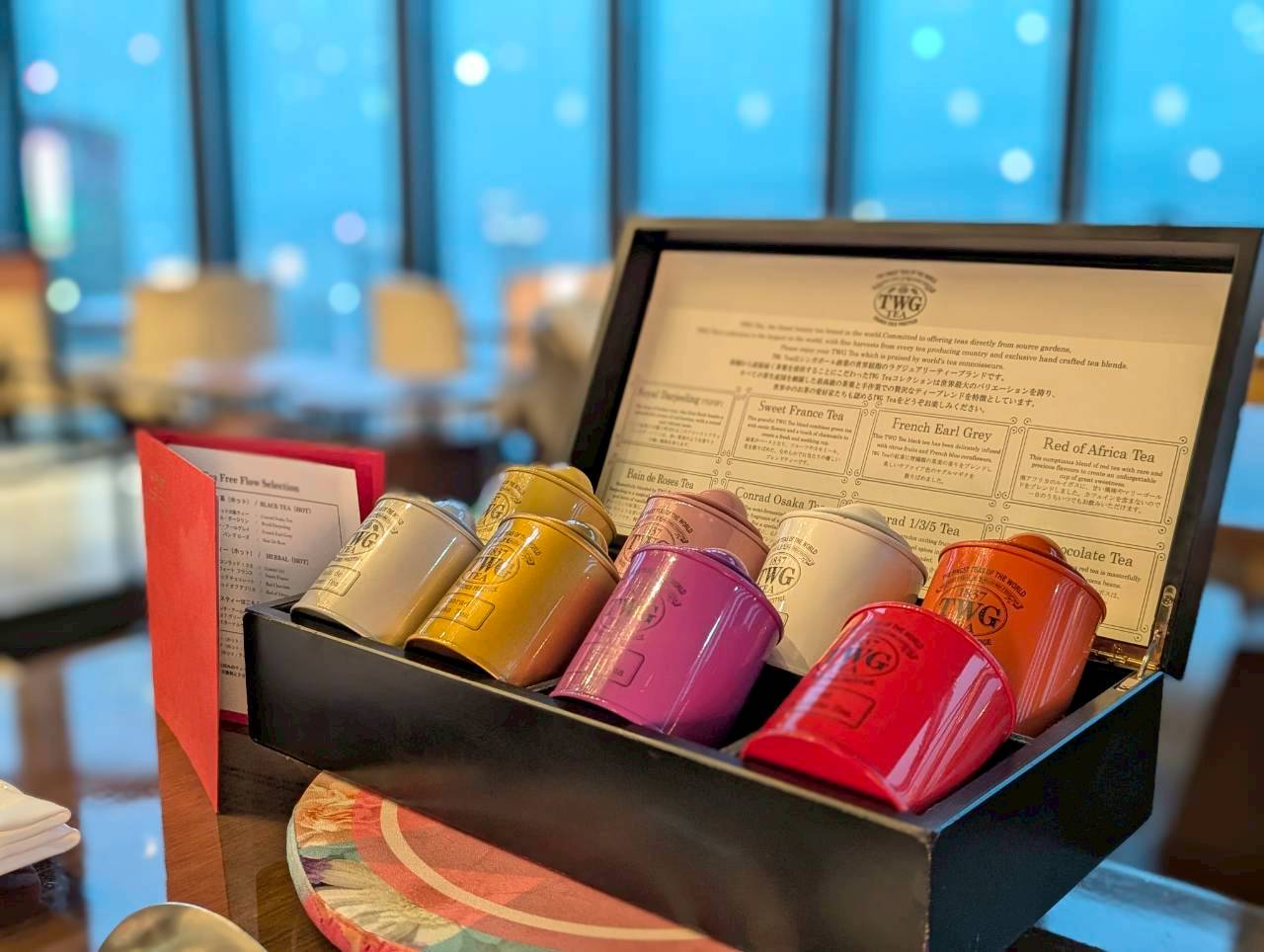 香り豊かな「コンラッド大阪オリジナルブレンド」をはじめ、世界中の茶葉を楽しめるTWG Teaの10種の紅茶と3種のコーヒーが用意されています。
