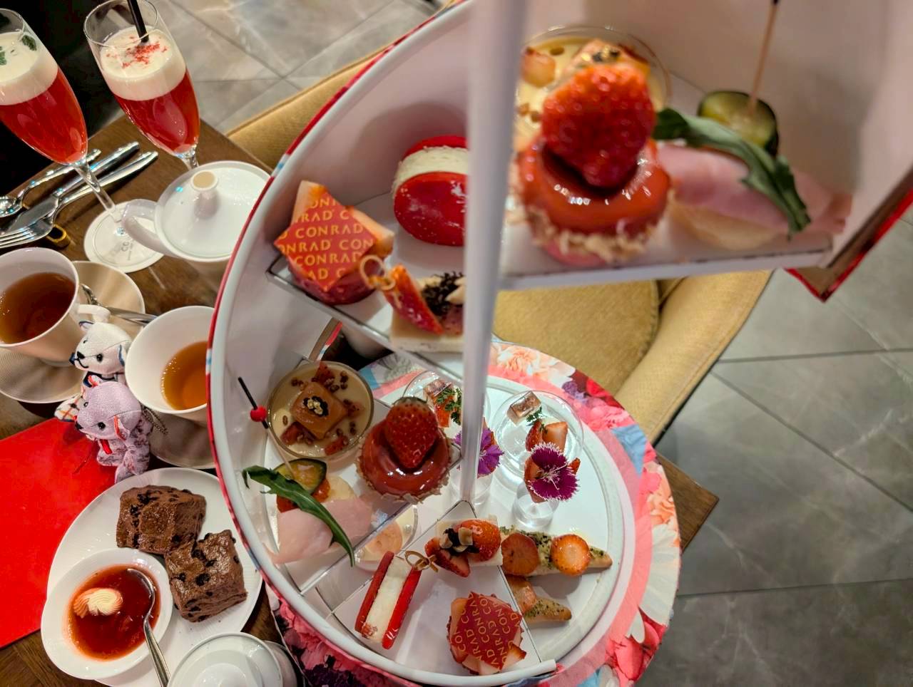 CONRADロゴ入りチョコレートがトップに飾られ、写真映えすること間違いなし!