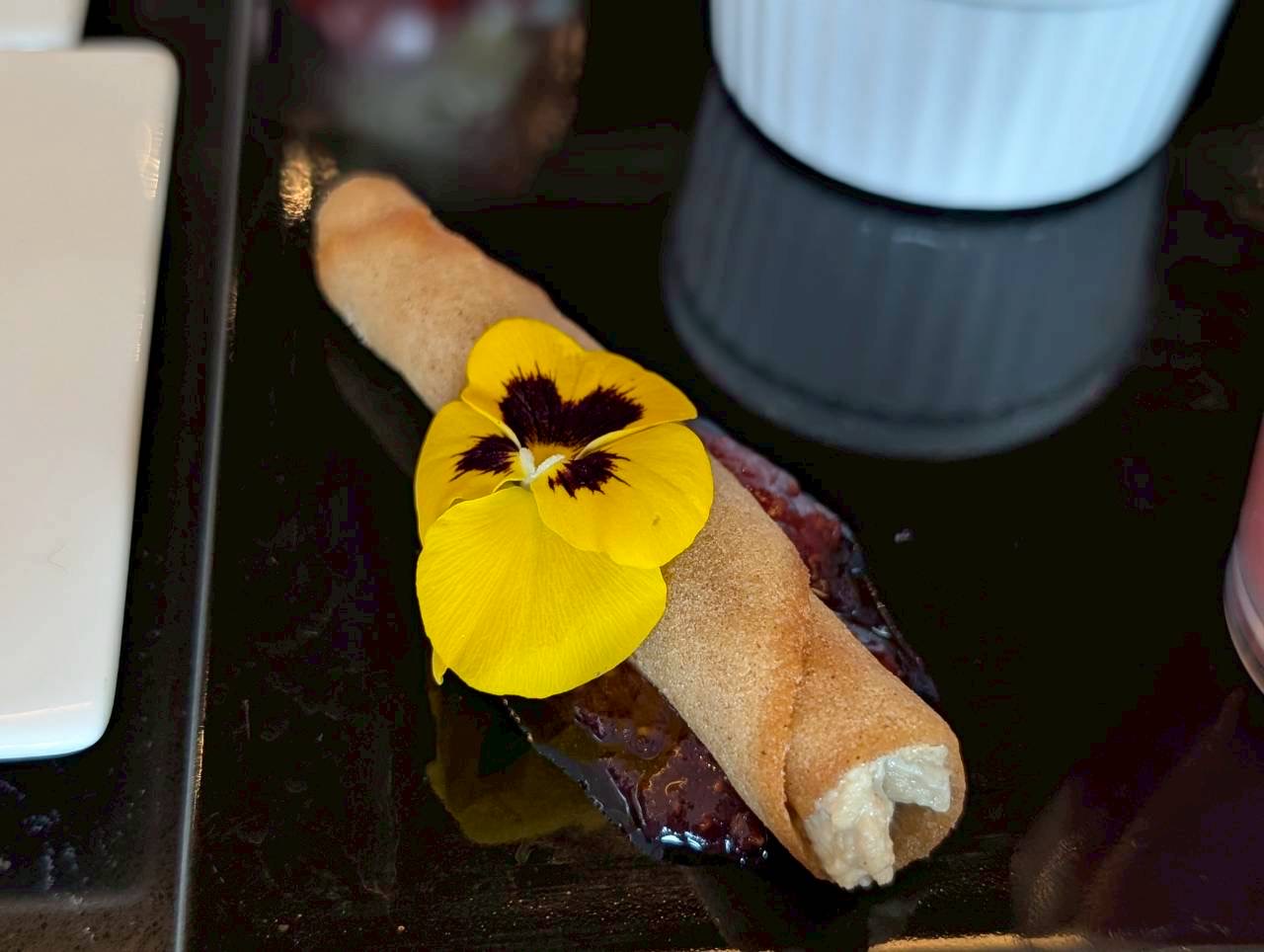 和の空気をまとった「イチゴと味噌漬けクリームチーズと山椒」です。