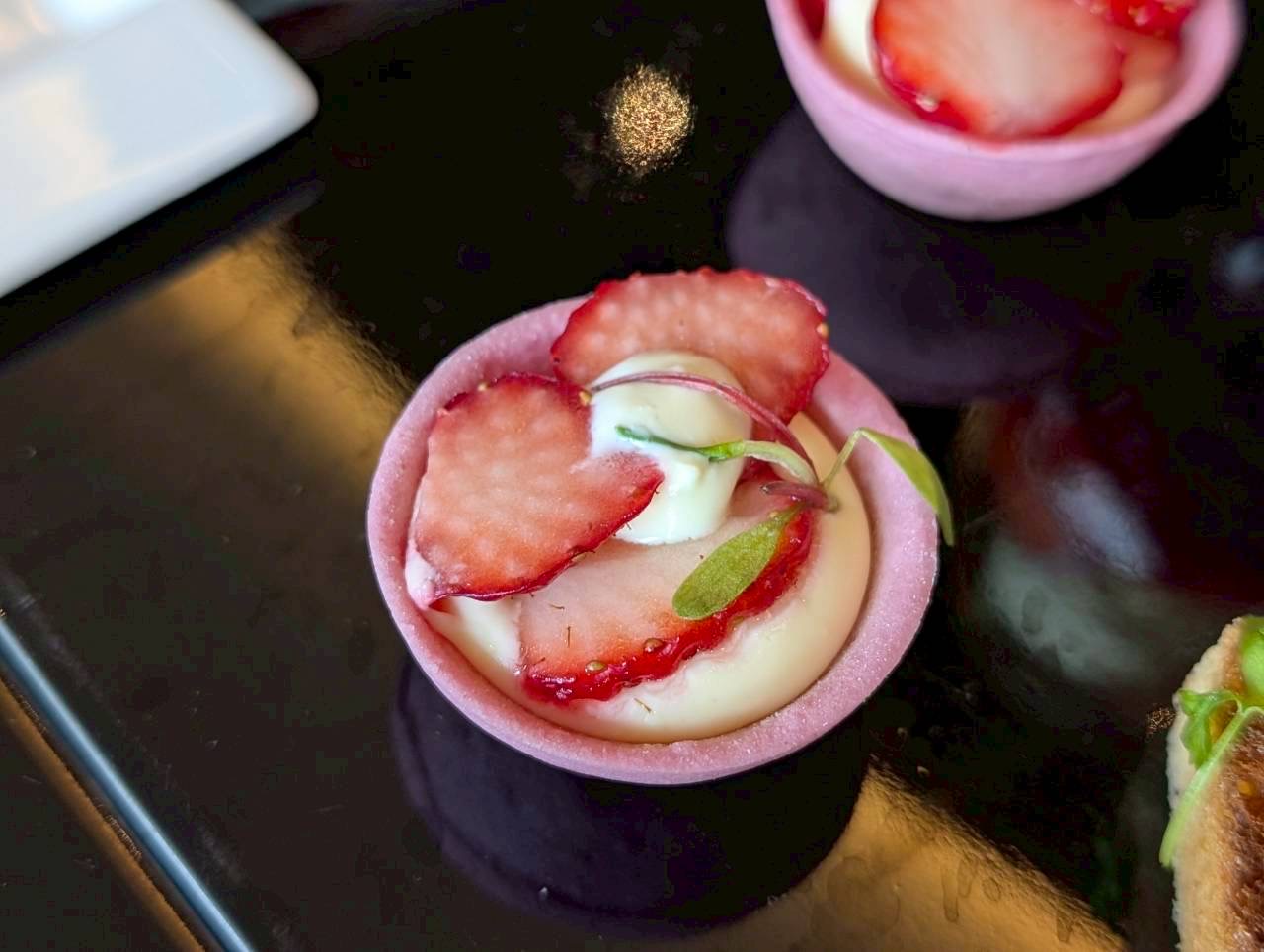 いちご尽くしのセイボリーは、「イチゴのコンフィチュールとフォアグラのムース」からいただきます。