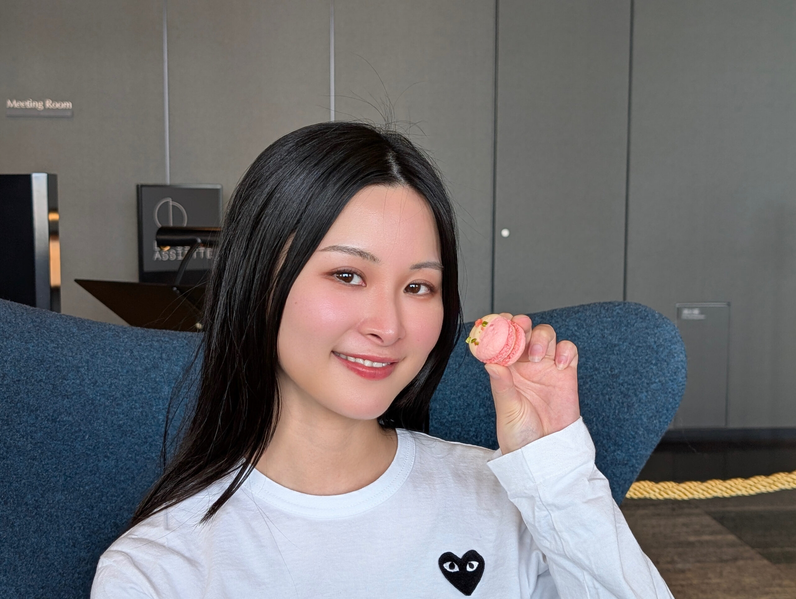 淡いピンクが可愛らしい「イチゴ餡とチーズガナッシュのマカロン」です。